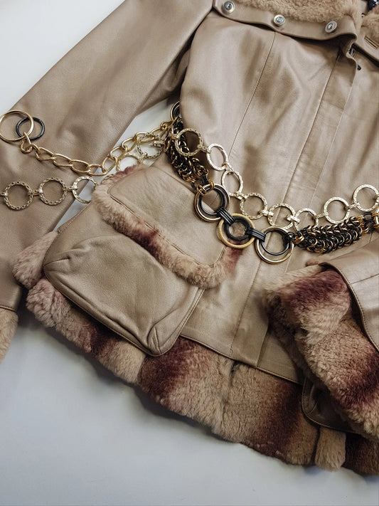 Vintage 2000s Metallic Champagne Leather & Fur Jacket - 100% genuine leather