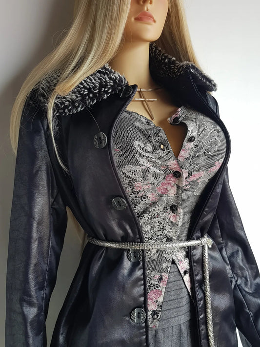 Vintage 2000s Vegan High Shine Leather & Ultra Plush Vegan Fur Collared Coat - Super Buttery Soft - 100% vegan - Fully Lined & Button up front