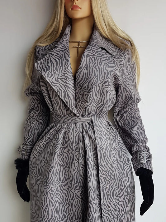 Vintage 2000s Vegan Suede Zebra Print Coat in Grey tones - Gorgeous tie waist - Super Buttery Soft - 100% vegan & Button up front with tie waist