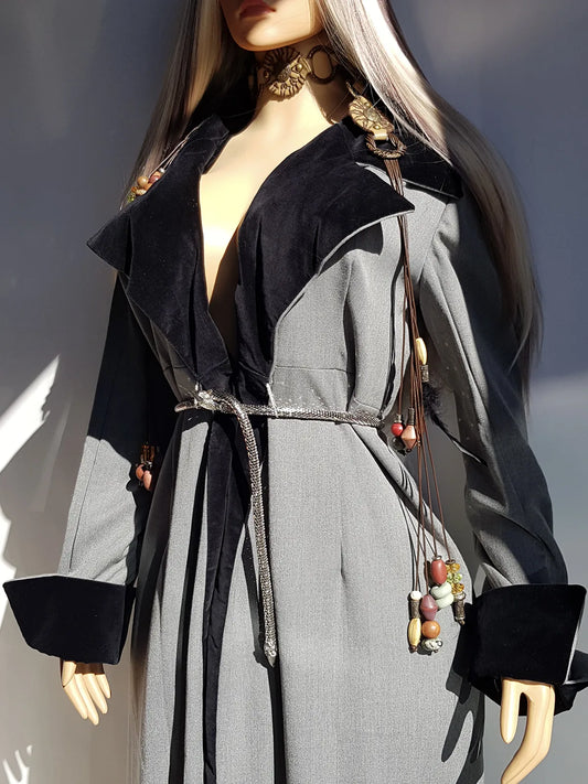 90s Vintage Floor Length Romantic Goth Coat - Large Velvet Feature Collar & Wild Cuffs - Tie front to wear with your choice of belt - Looks Great Worn Open