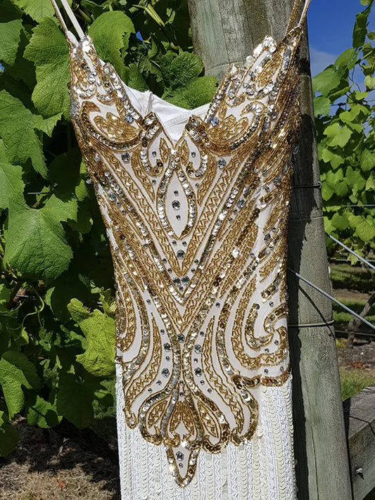 Pure Silk One in a Million Party Dress - Fully Hand Sequined - White & Gold full sequins - magnetic piece that you'll keep forever