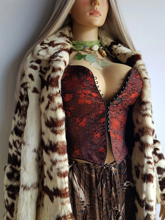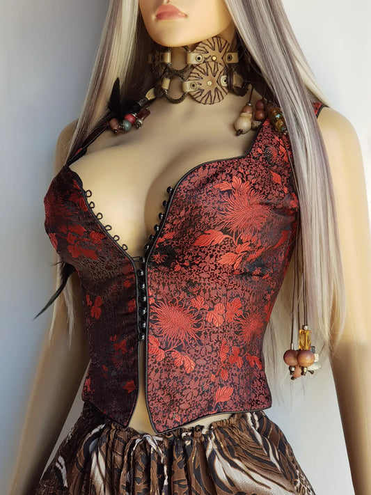 90s Brocade Corset top in Black with Vibrant Red - Impeccable Tailoring with Satin Edging & Buttons up the front - Incredibly Sexy Piece - Versatile & High Quality Fabric