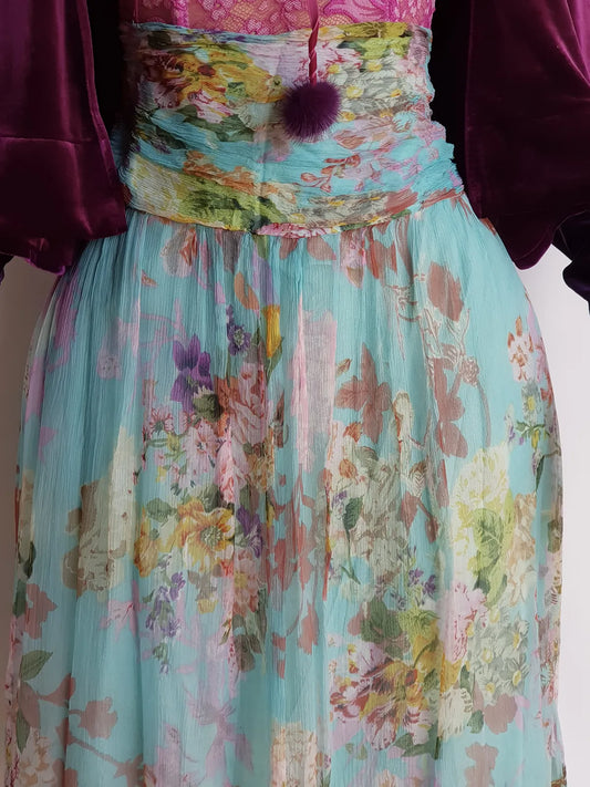 1990s Sexy Bohemian Rockstar Vintage Maxi Skirt / Dress - Floaty Multi Tier Cut - Insane Floral Print - Double Layered