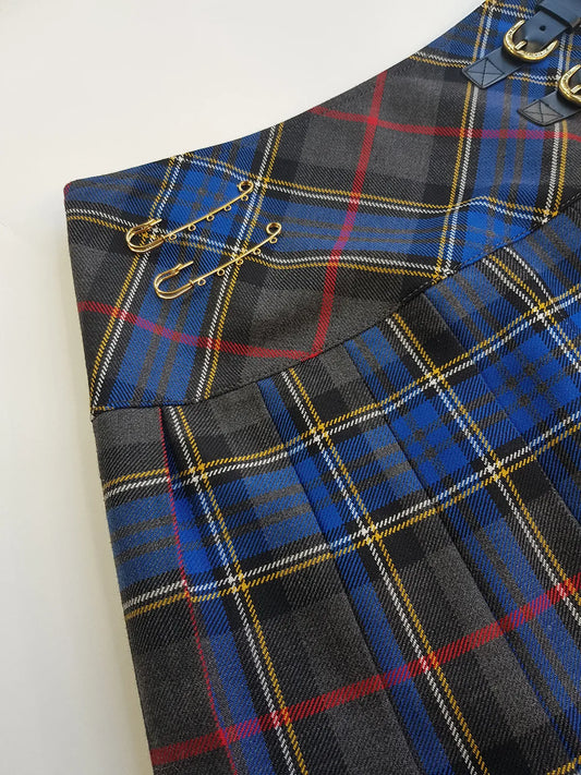 1990s Vintage Wool Plaid Pleated Mini Skirt - Leather Buckles with Gold Hardware - Perfect Tailoring & Length - Pins Included to hang your own charms
