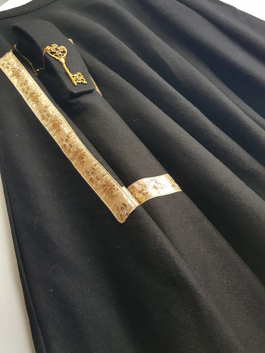 1950s Vintage Wool Circle Skirt with Ornate Gold & Rhinestone Skeleton Key - Chain & Brocade Pocket