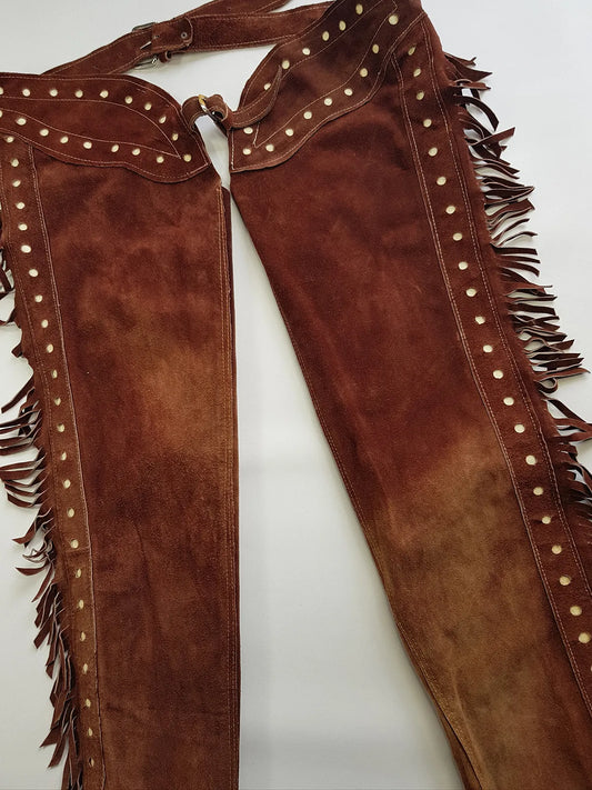 1970s Geniune Suede Cowgirl Tassel Chaps - Beautiful Soft Suede & Leather Tassel Chaps - Rich Tobacco Brown- Chunky Metal Zippers - Perfect Fit - Iconic for a Costume