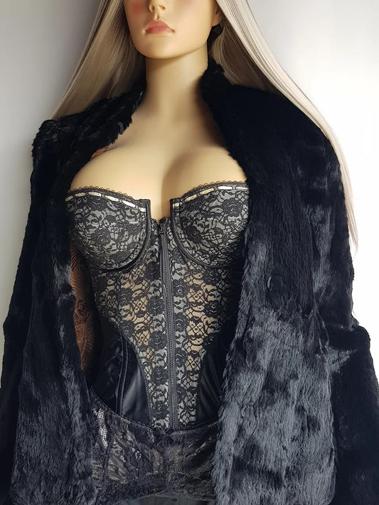 Genuine Vintage Rich Inky Black 1950s Vintage Fur Coat - Beautiful Tailoring on Shoulders and Sleeves - Super Soft Rabbit