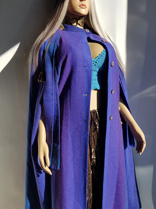 Vintage Really Special - 100% Irish New Wool Cape / Coat in Blue & Purple Tones - Full Length - Insanely High Quality and Immaculate Tailoring