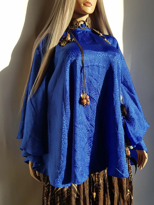 Rich Blue Vintage Satin Cape with Glamorous High Collar - Floaty & Flouncy - Perfect Drape
