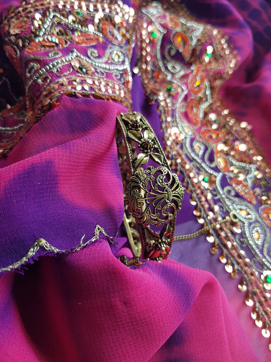 1970s Romantic Gothic Designer Ornate Metal Bracelet - Stones & Pearls - Reversible to be Worn Two Ways - Stamped