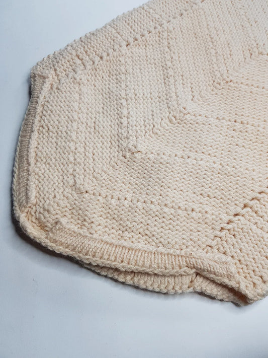 Rare 1970s handmade Knit Vest in Ivory - Hand knitted pure wool - V Neck & Hemline - Structured Waist - Perfect as a trans-seasonal piece worn over a flouncy shirt