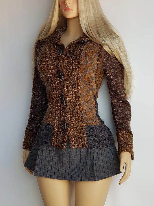 Vintage 1990s Sexy Earth Fairy Woodland Toned - Hand Knitted Jacket with Leather Toggle Buttons
