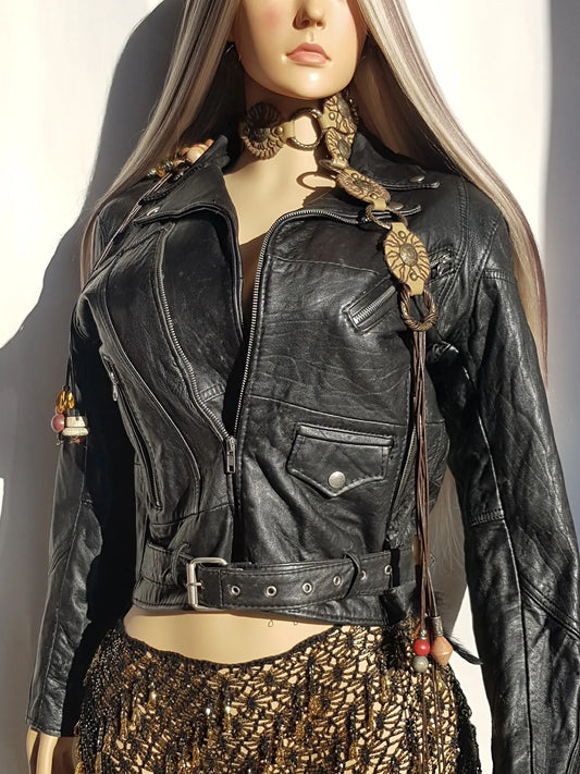 Vintage Bad Bitch Rockstar Girlfriend Leather & Chain Underbust Top -Beautifully Tailored Black with Fitted Lacing and Chain Collar