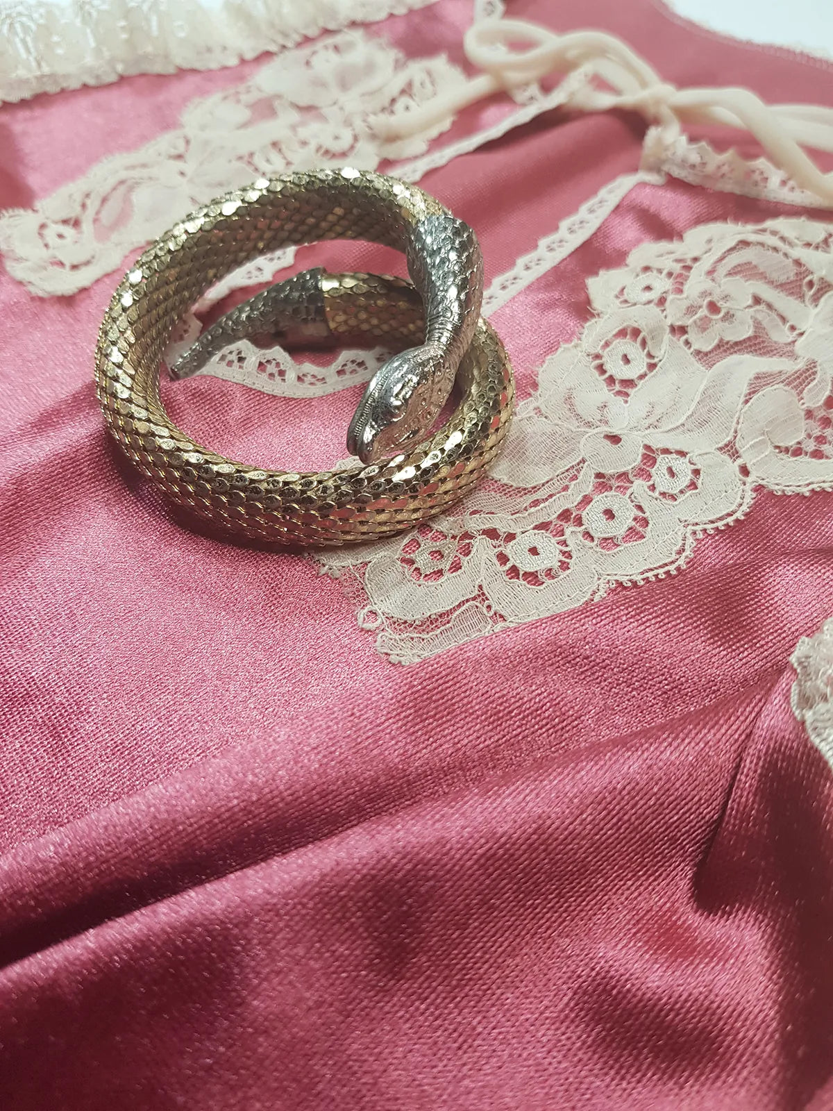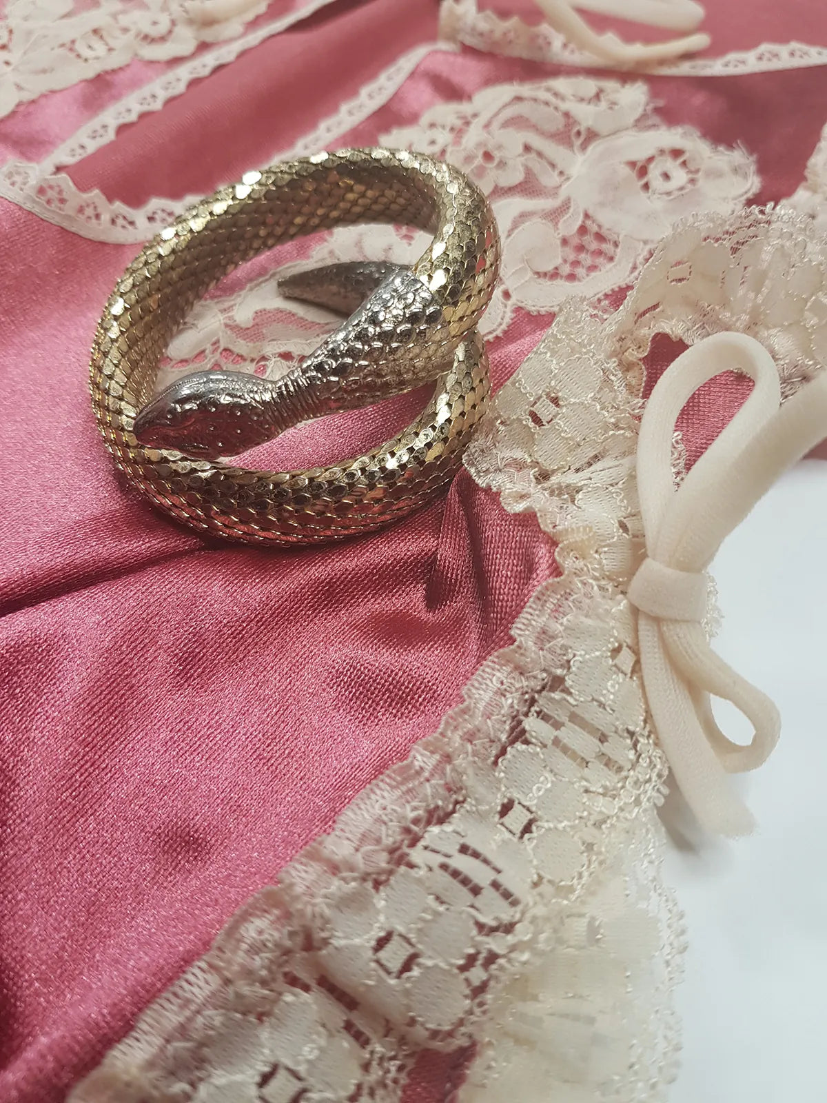 1960s Gold - Antique Designer Snake Cuff Bracelet - 2 Tier Wrap Around Wrist - Stamped