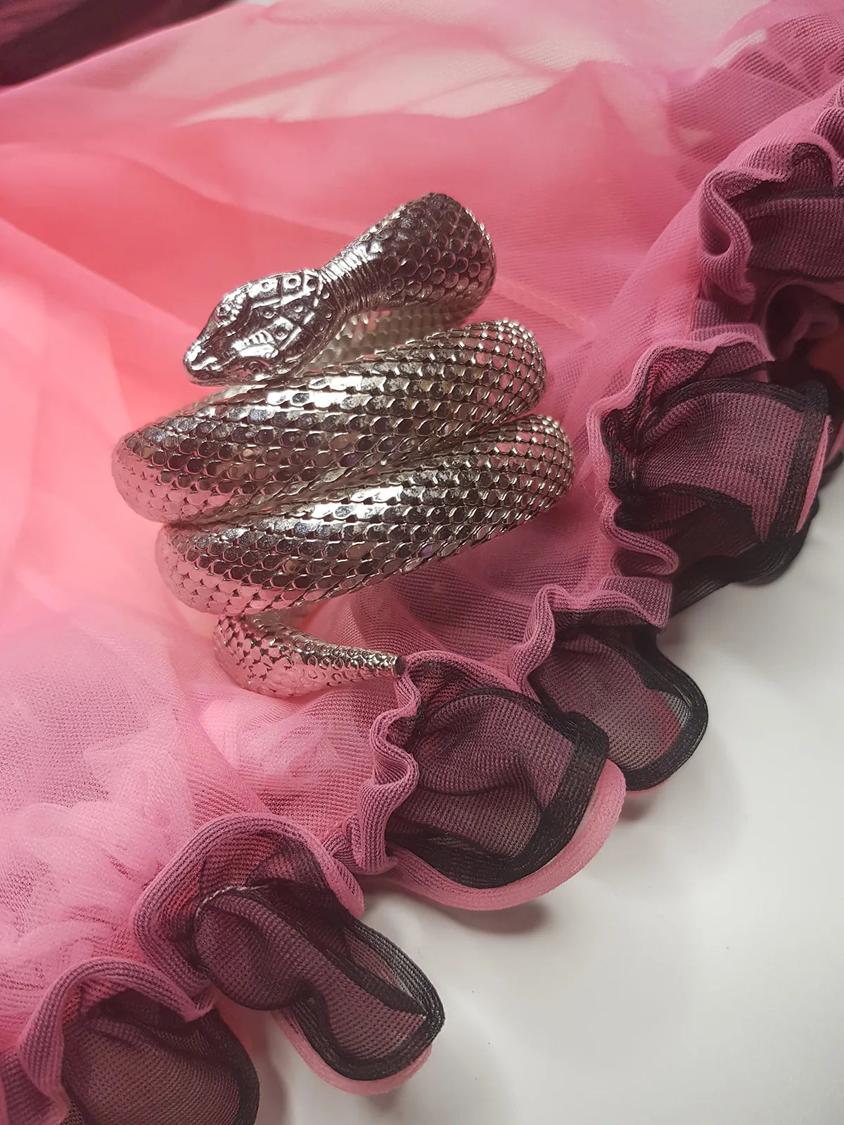 1960s Silver - Antique Designer Snake Cuff Bracelet - 3 Tier Wrap Around Wrist