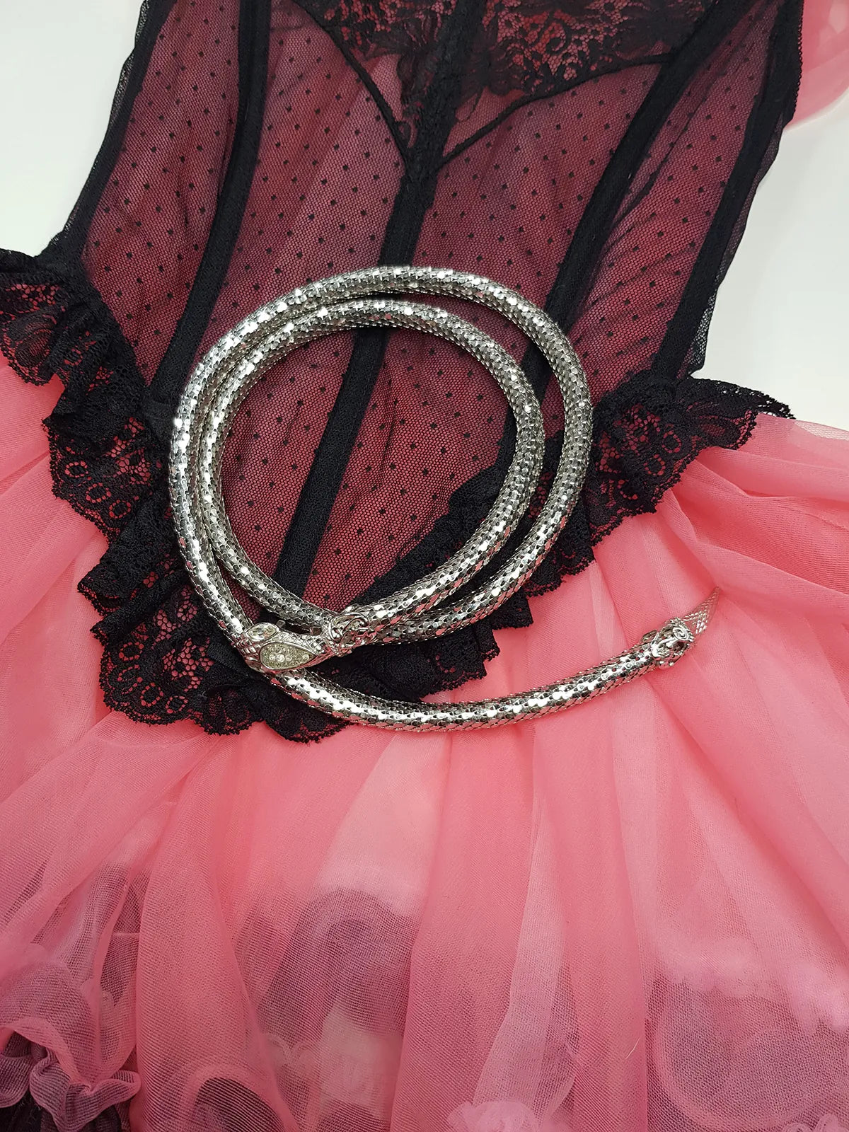 1960s Silver & Crystal - Antique Designer Snake Belt / Necklace / Bracelet - Wear Multiple ways