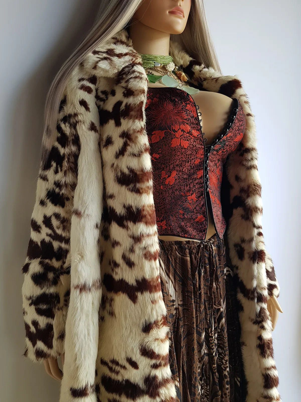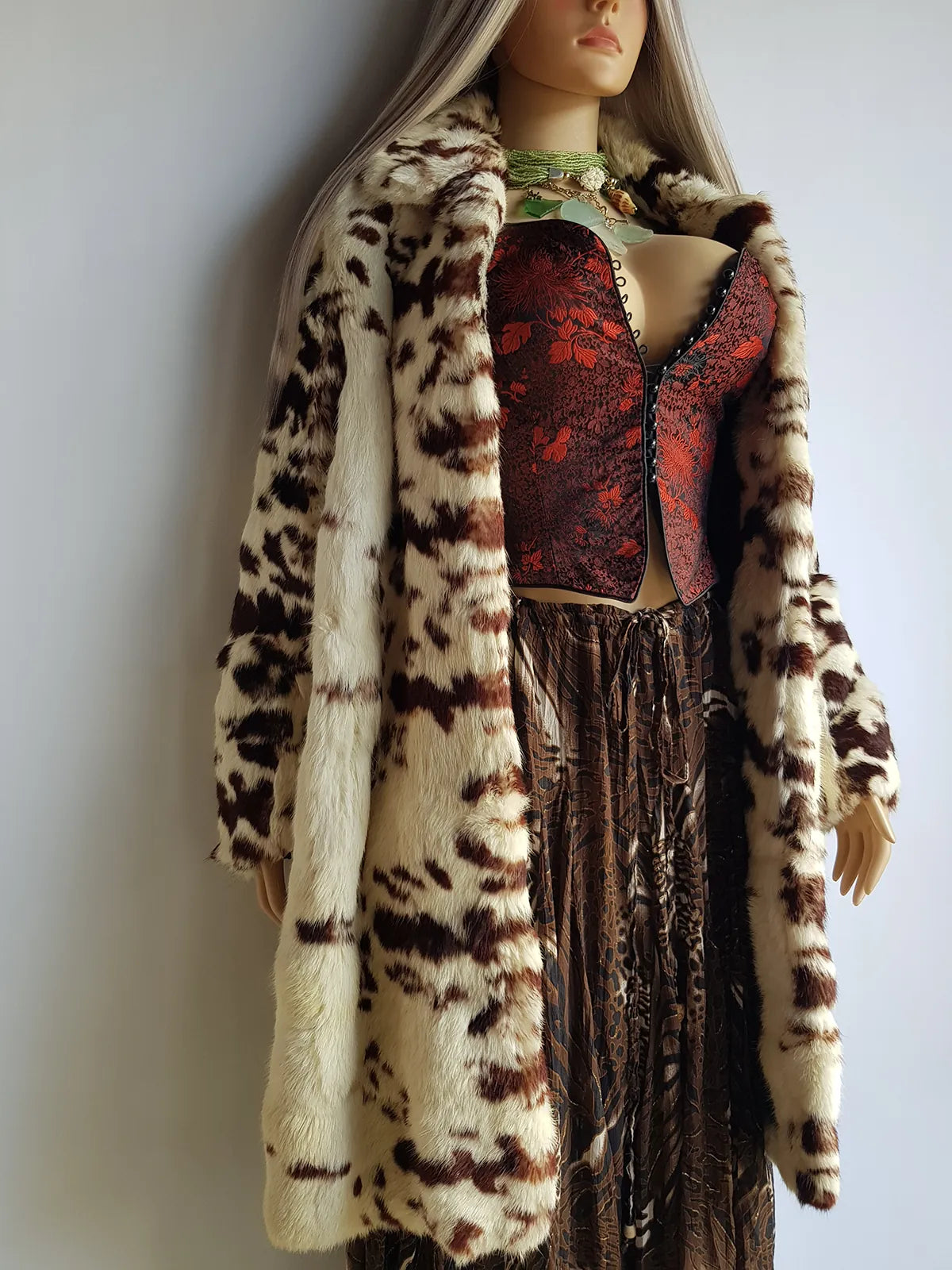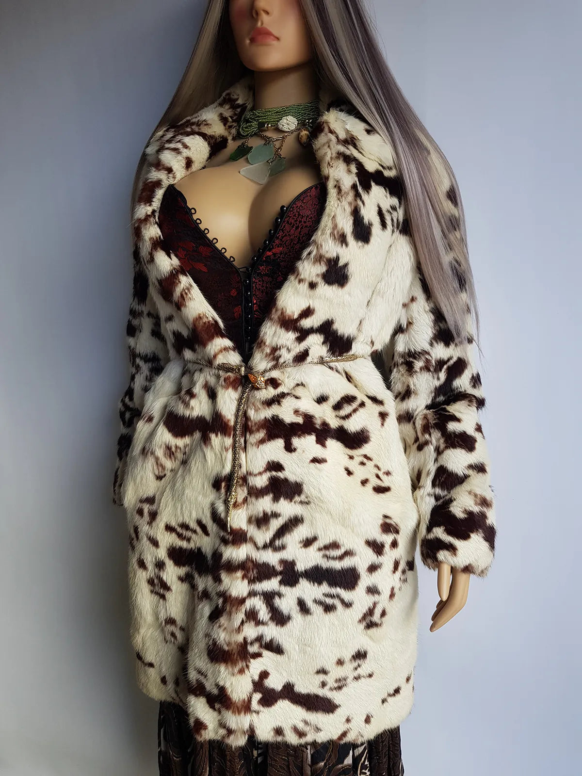 1940s Vintage Italian Rabbit Coat - Super Soft - Cream & Chocolate Brown