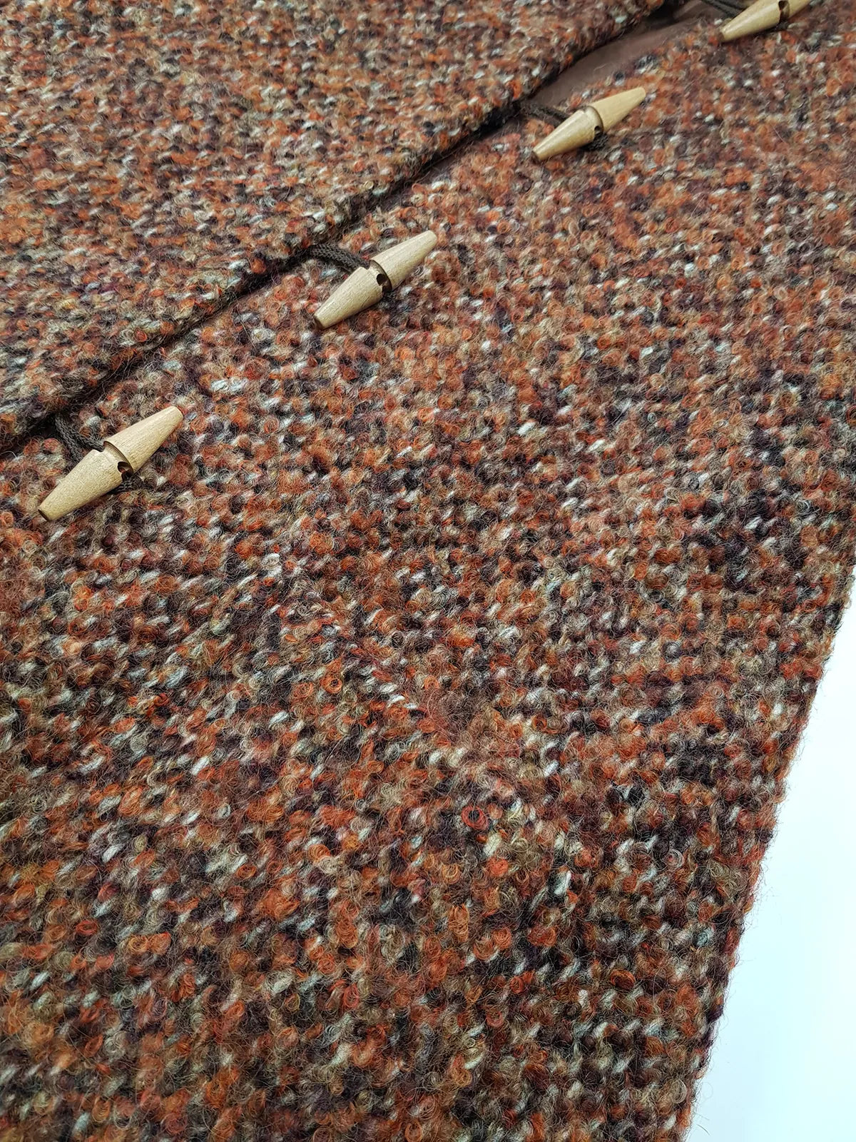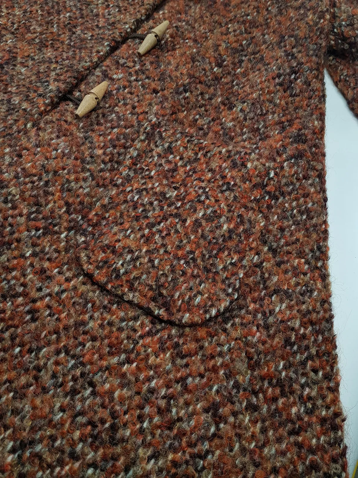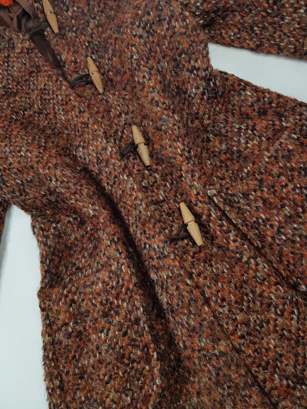 1950s Incredible Hooded Coat in Burnt Tobacco with Toggle Clasps - Fully Lined - Handmade Mohair Wool Knit