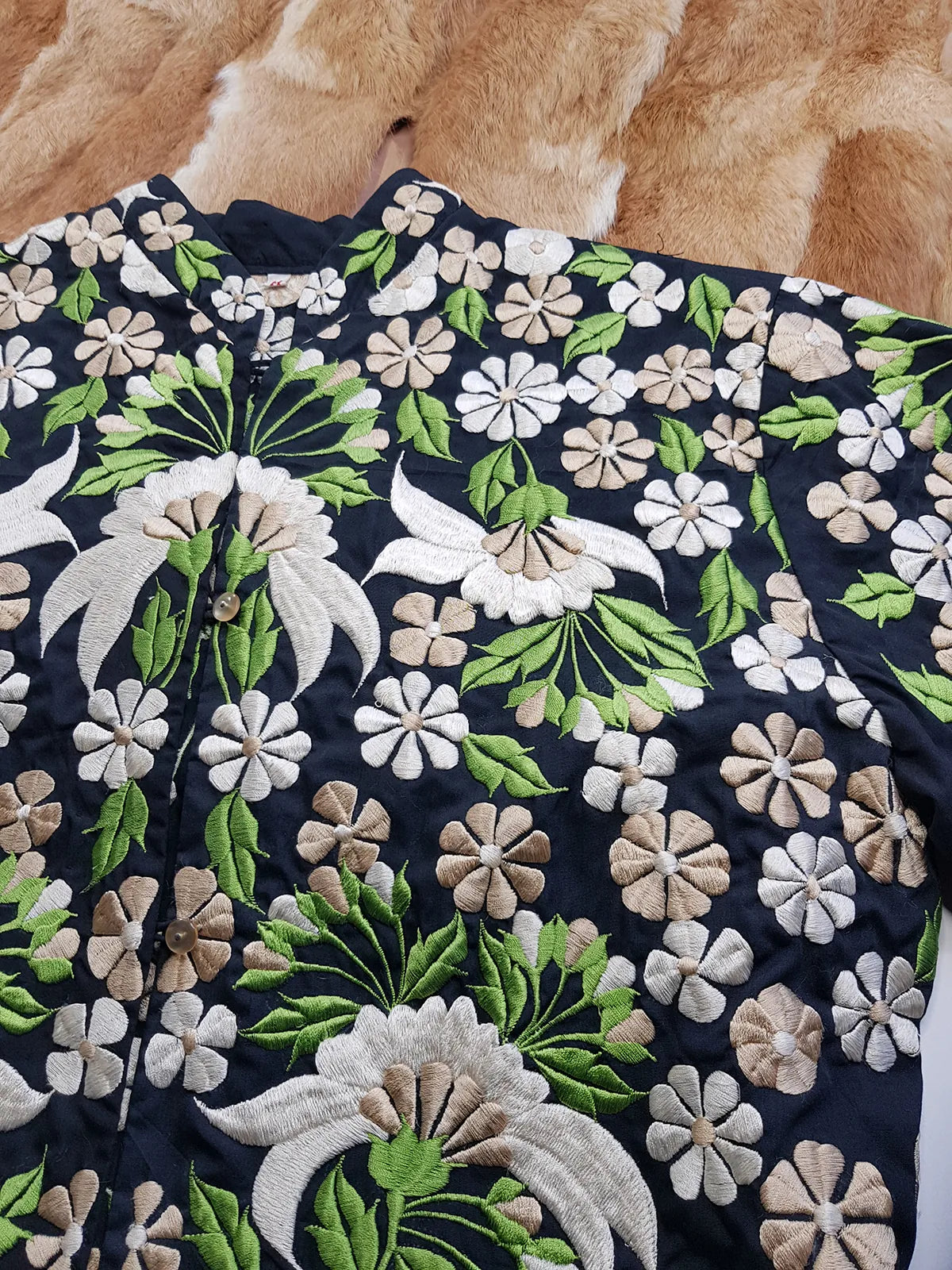 1950s Vintage Heavily Embroidered Asian Style Top - Cream & Green Tones - Intricate and Detailed