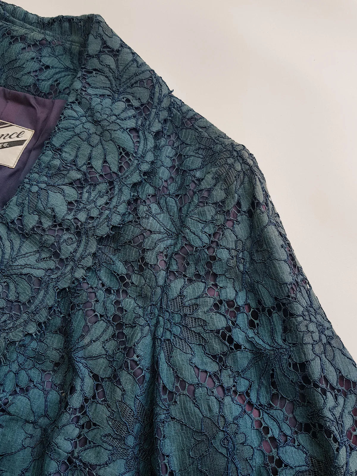 1950s Vintage Peacock Lace Jacket - Scalloped Lace Collar - Immaculate Tailoring - Fully Lined
