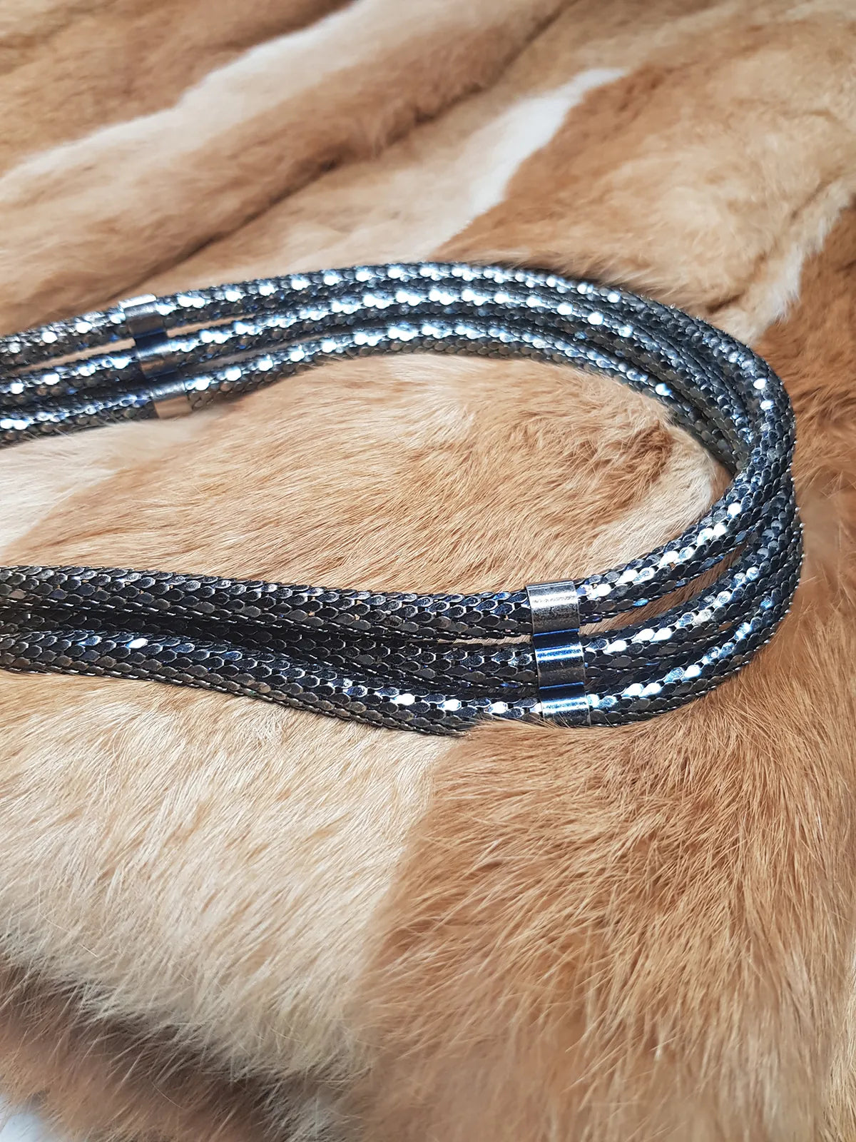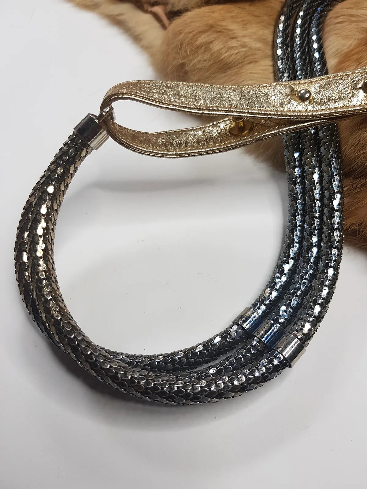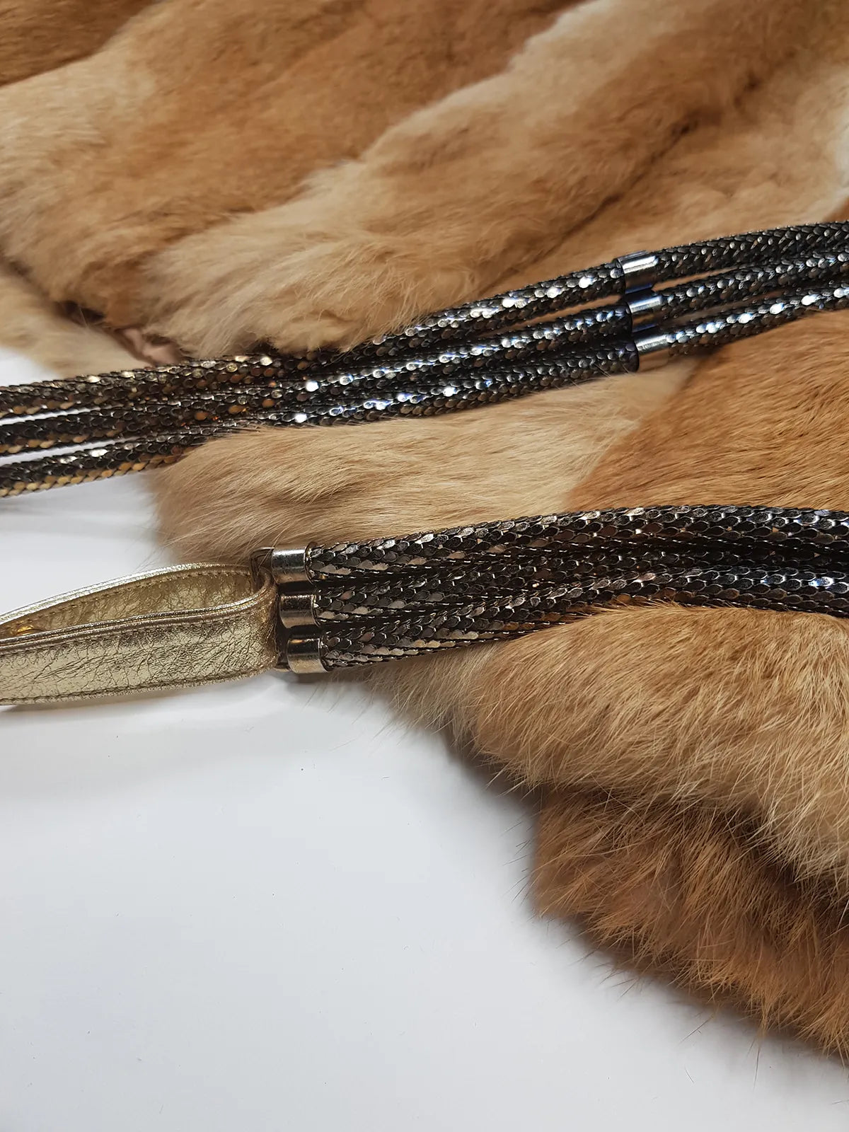 1970s Vintage Metal Snake Belt - Studio54 Style - 3 Tier Dark Metallic Blue & Gold Leather