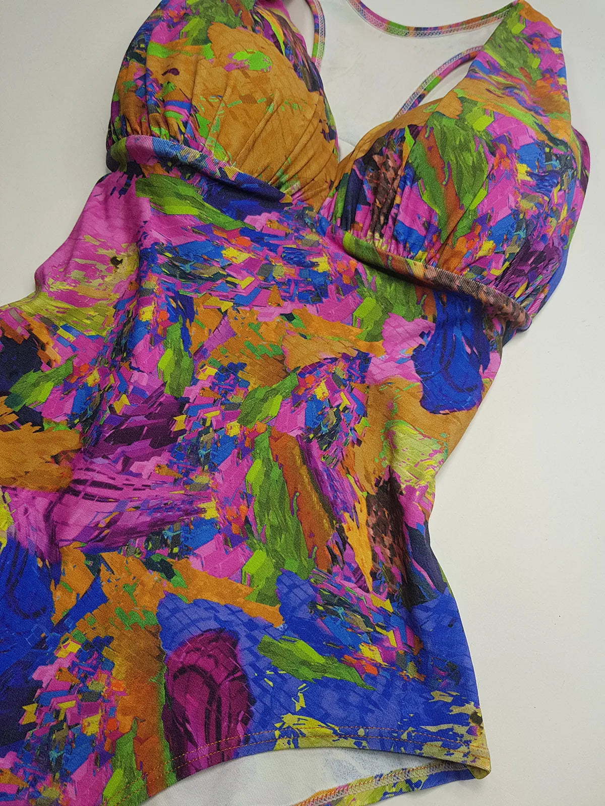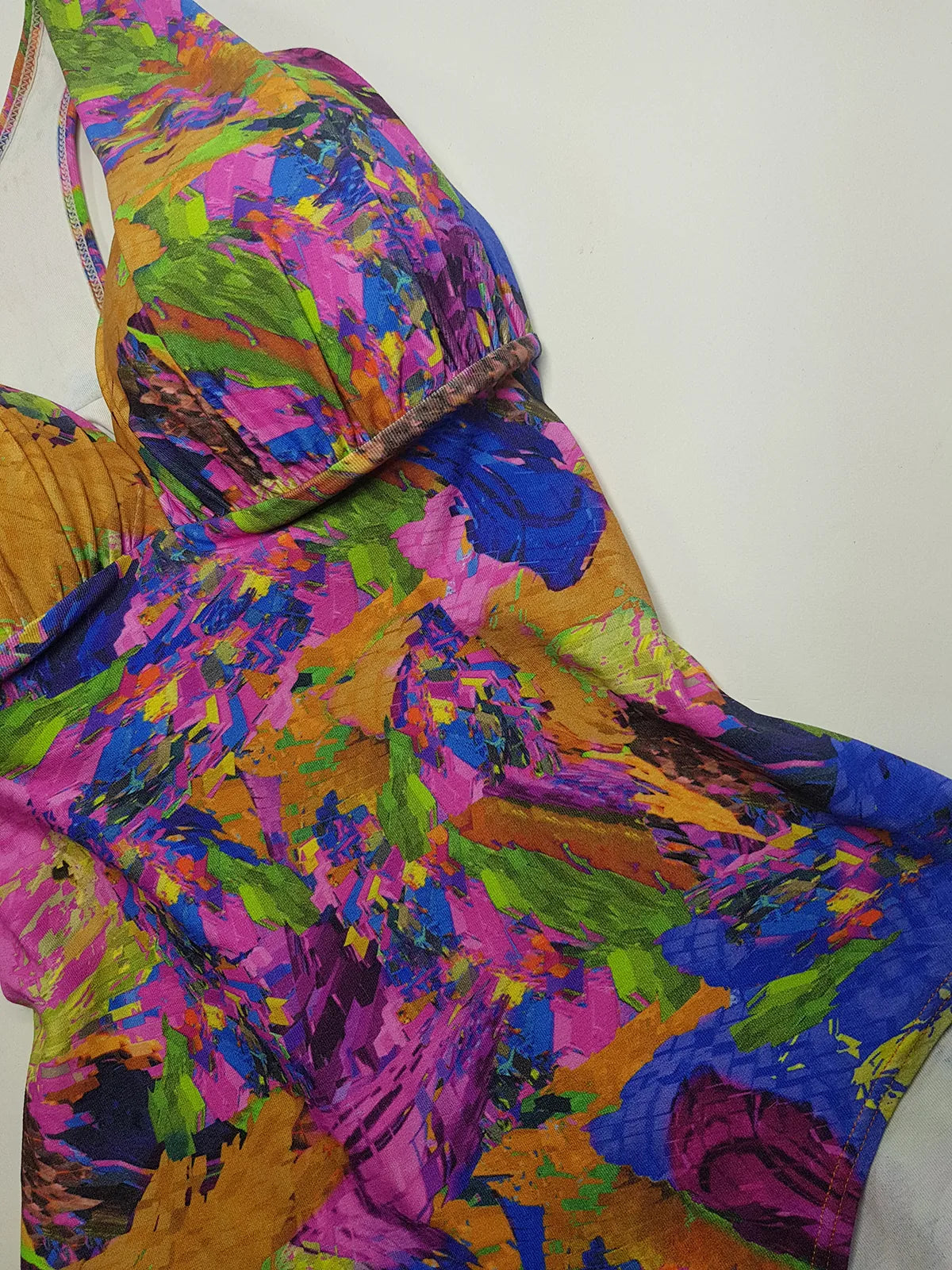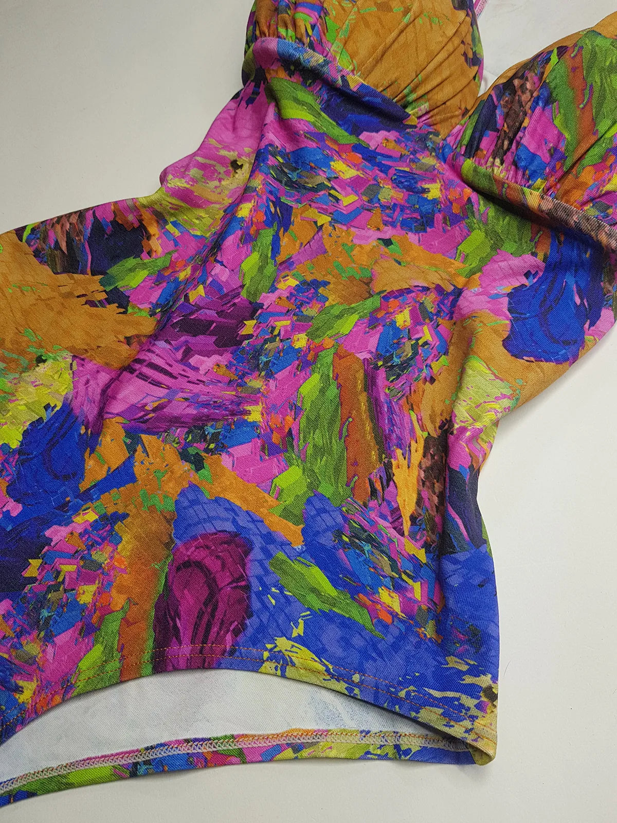 1980s Vintage Brazillian High Cut One Piece Swimsuit - Incredible Vintage Print - Figure Enhancing Cupped Bust with Gathered Fabric - Racer Back & Incredible Quality Fabric