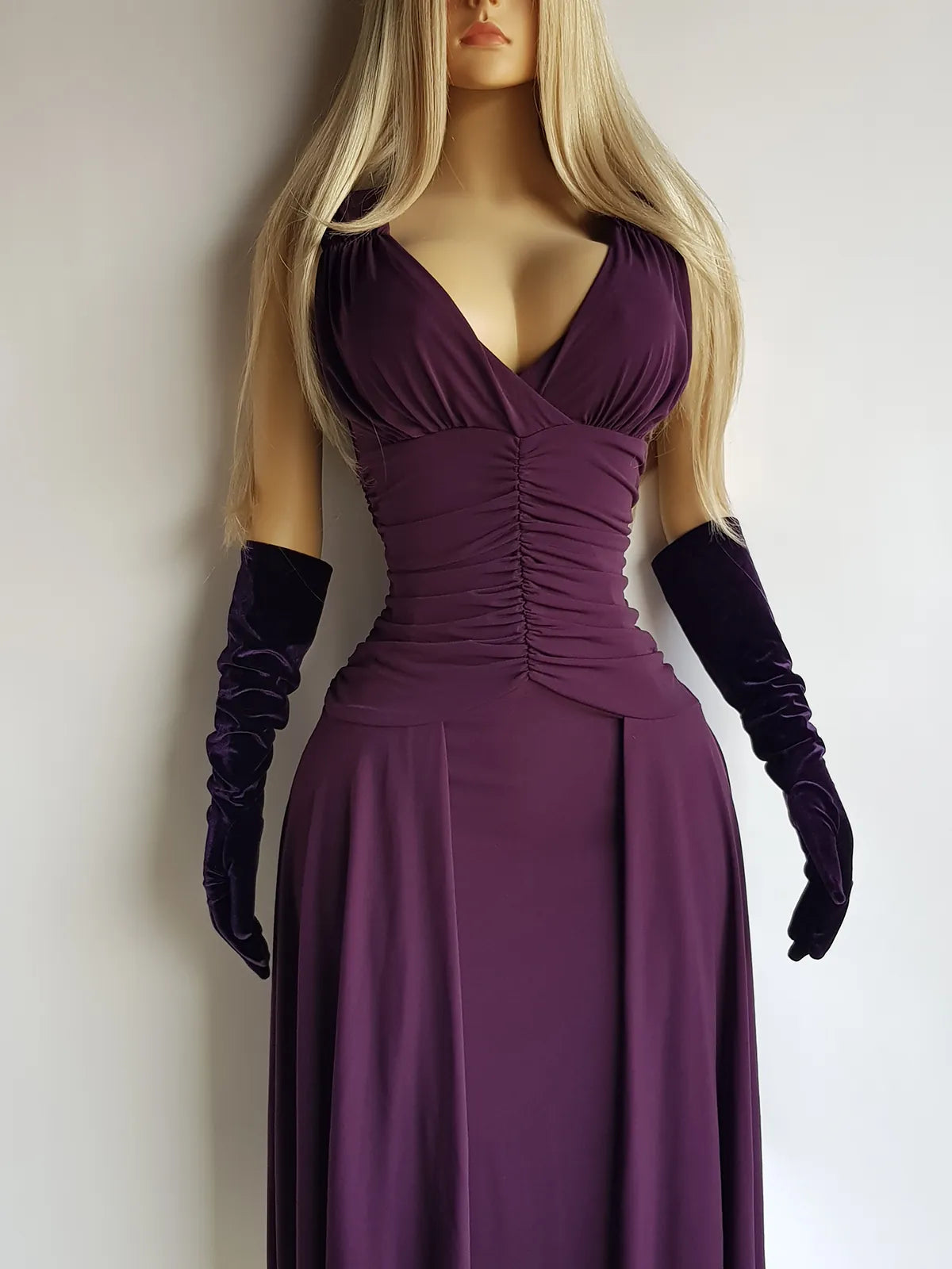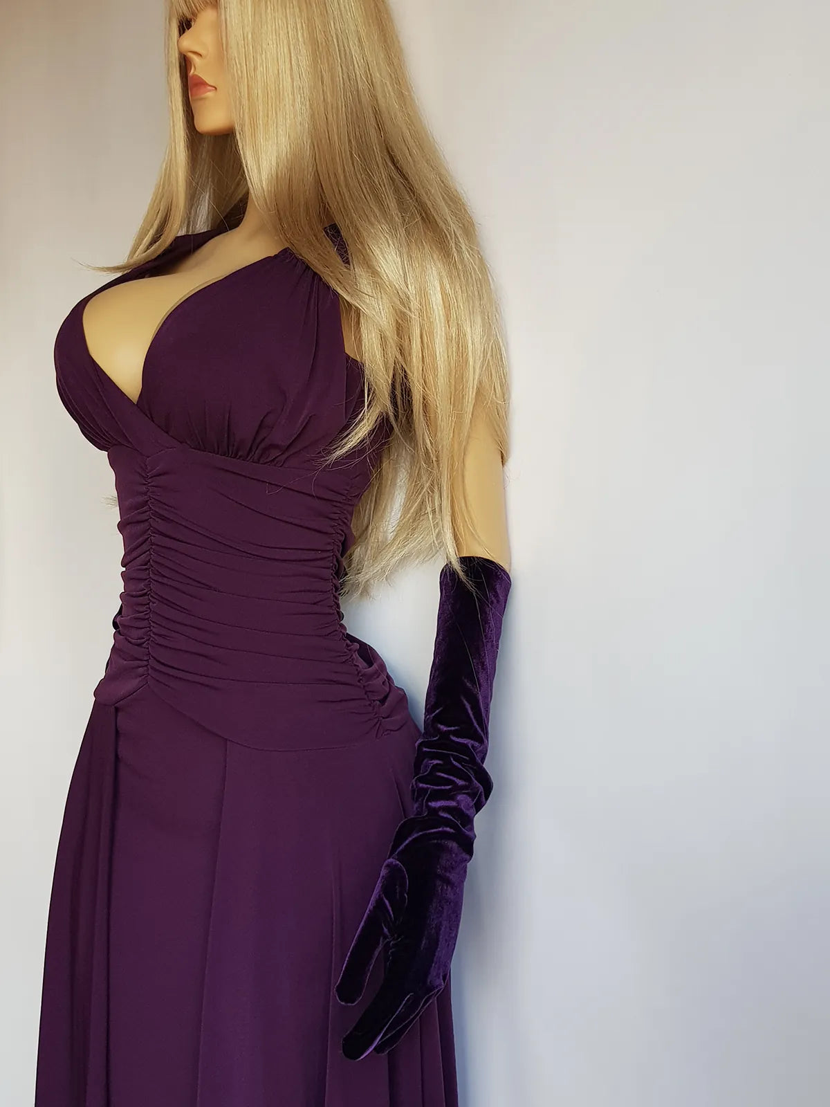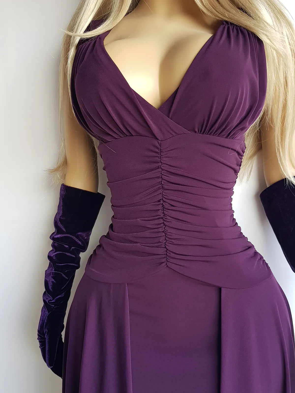 90s Sexy Purple Goddess Gown - Absolutely Beautiful Silhouette with Draped Bust & Waist Ruching - Stretch body hugging high quality draped jersey fabric