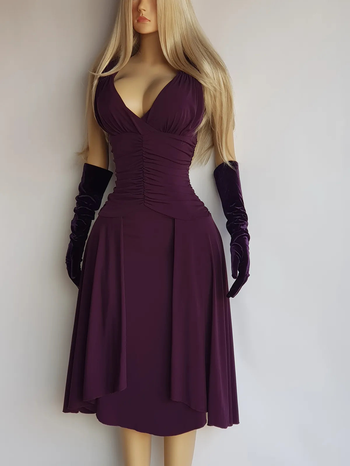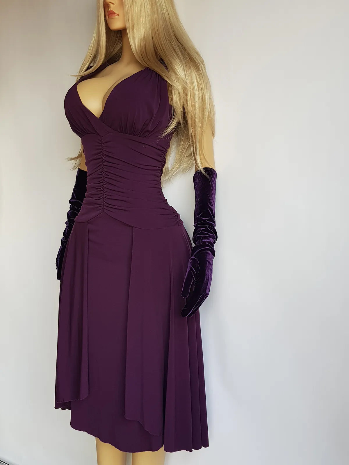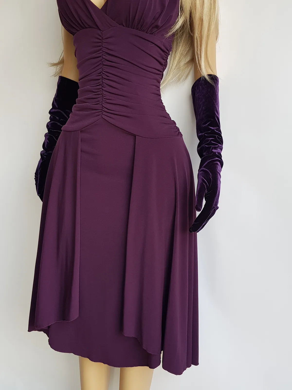 90s Sexy Purple Goddess Gown - Absolutely Beautiful Silhouette with Draped Bust & Waist Ruching - Stretch body hugging high quality draped jersey fabric