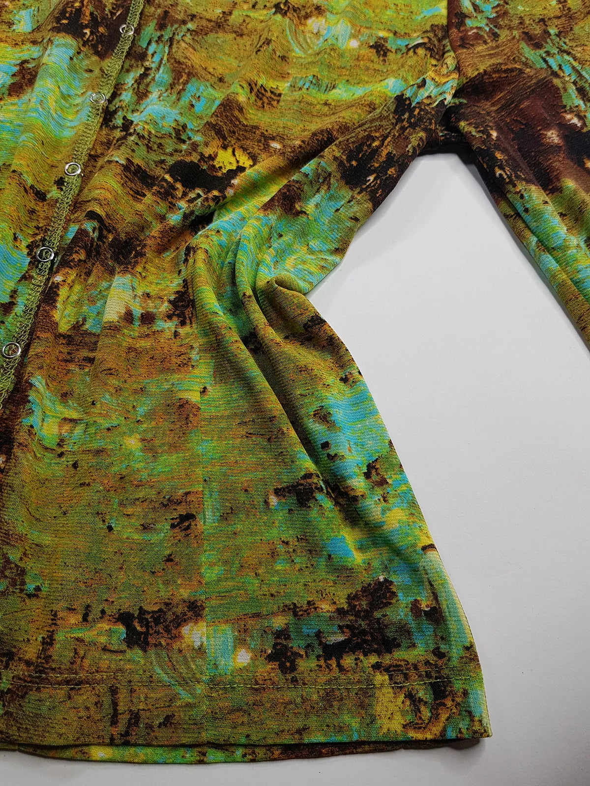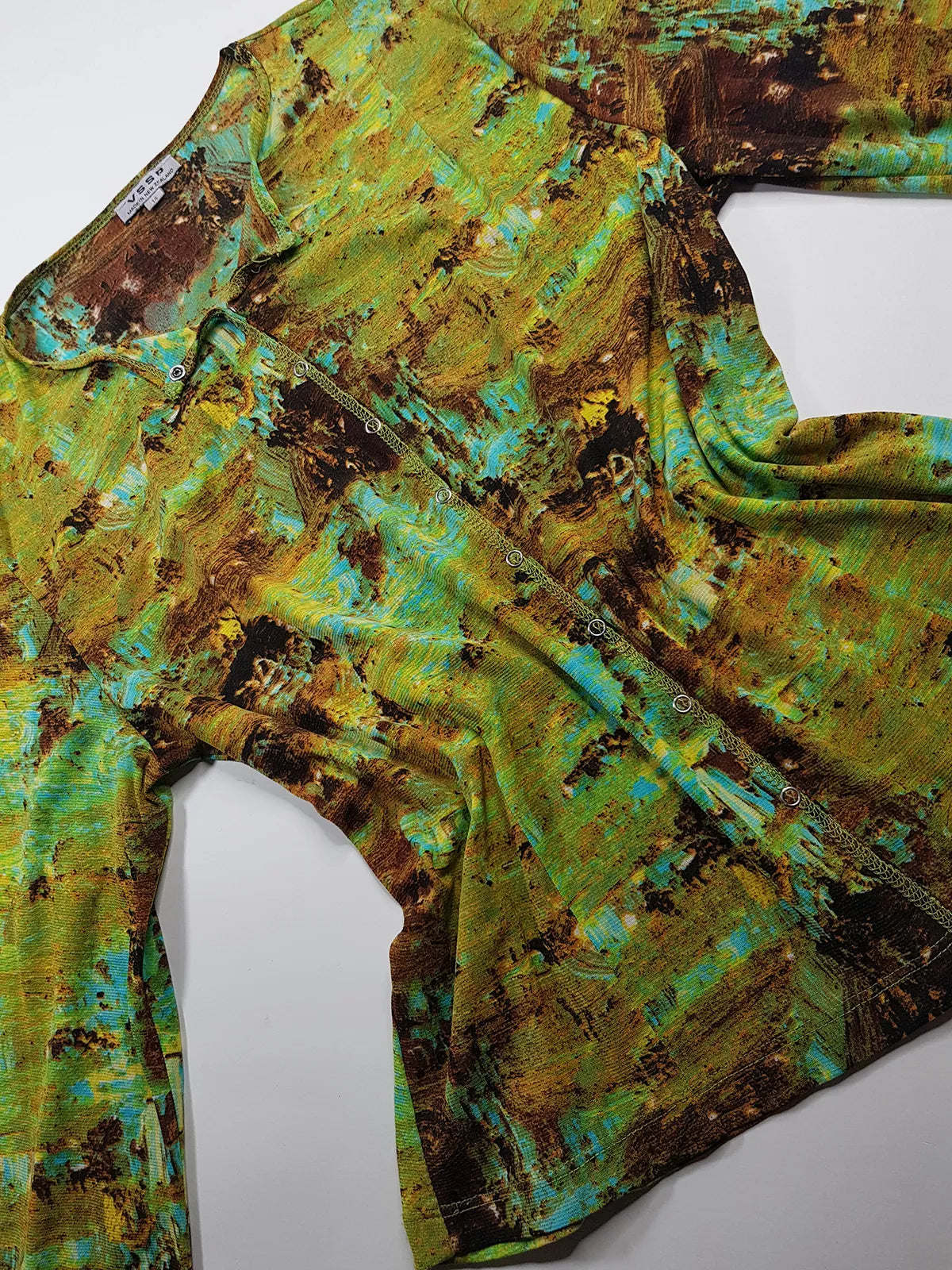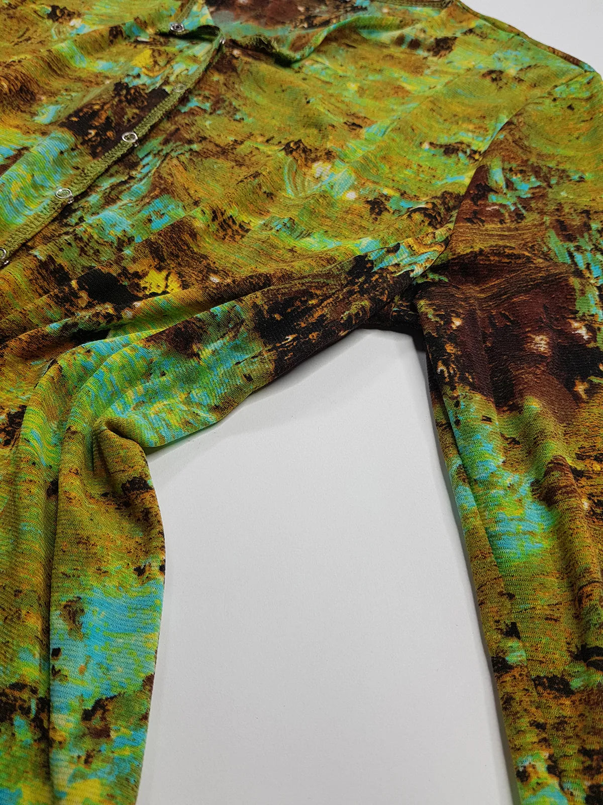 1990s Sexy Vintage Designer Collared Top - Button Feature Front - Tight & Form Fitting Stretch Fabric - Chartreuse & Blue
