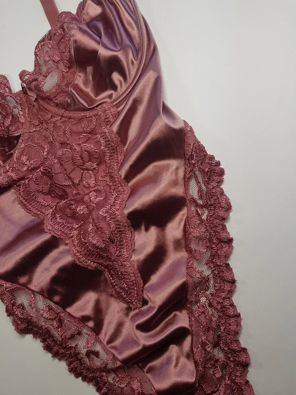 1990s Vintage Dreamy Lace & Satin High Cut Teddy Bodysuit - Unworn - Unbelievably Gorgeous in Sugary Pink