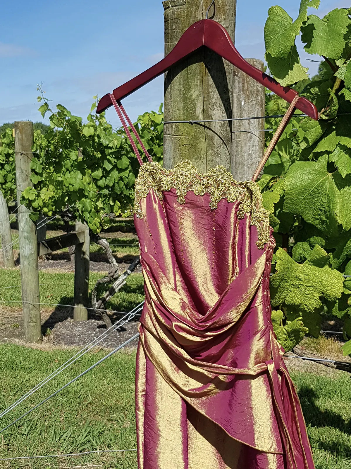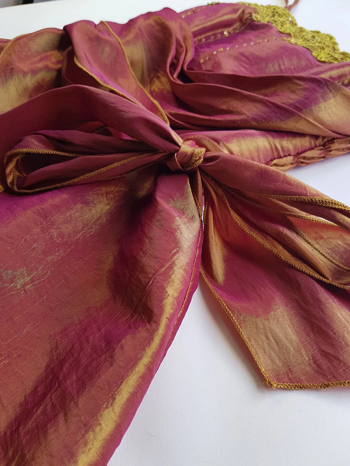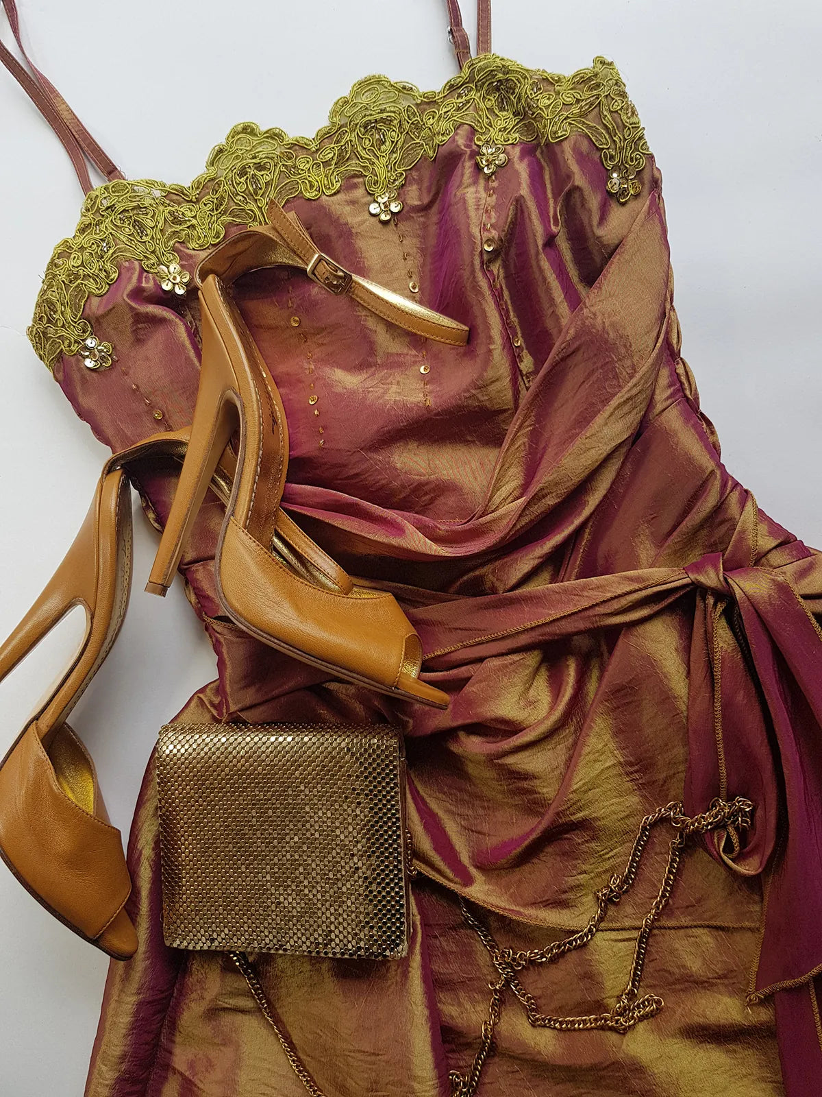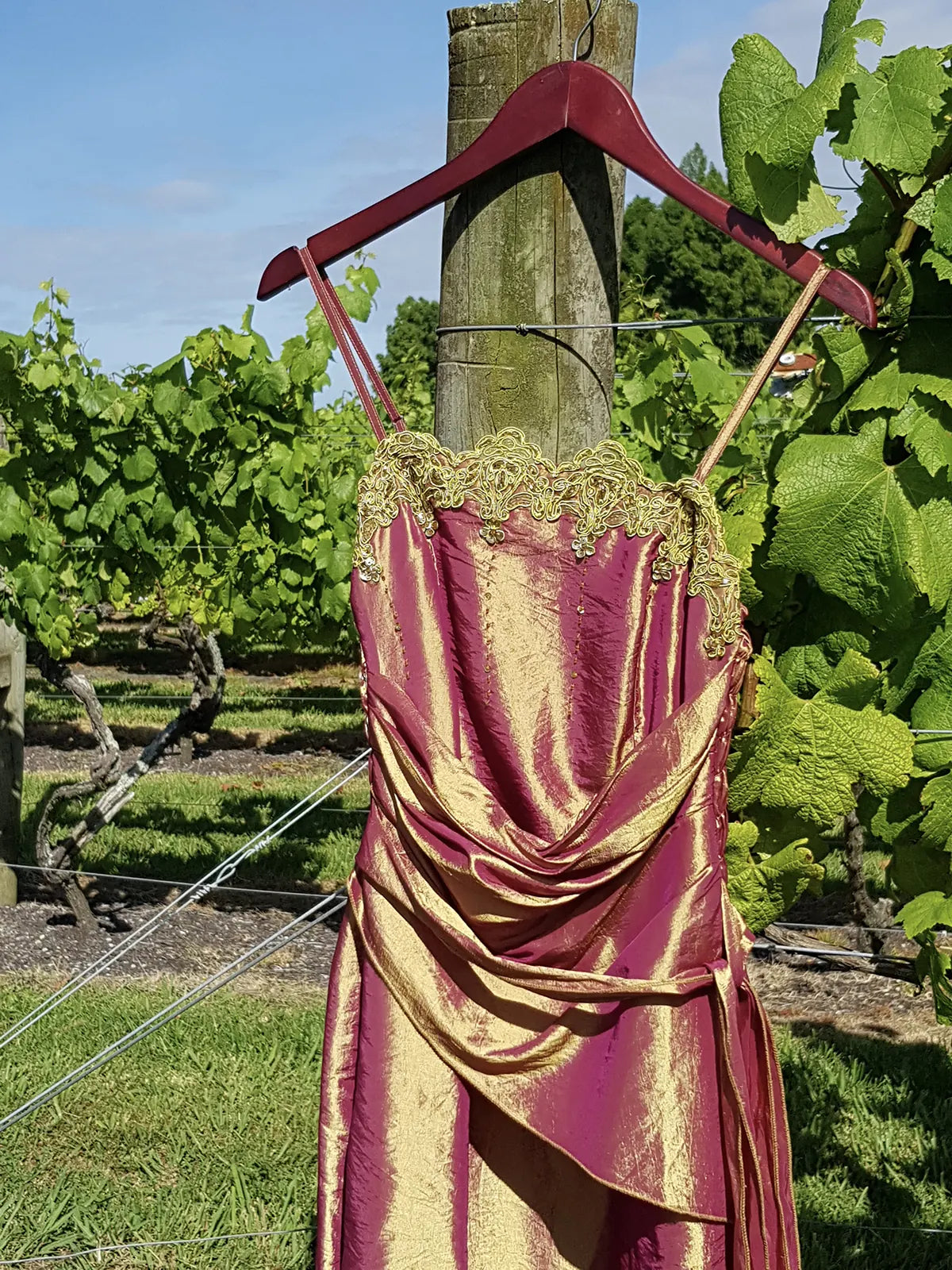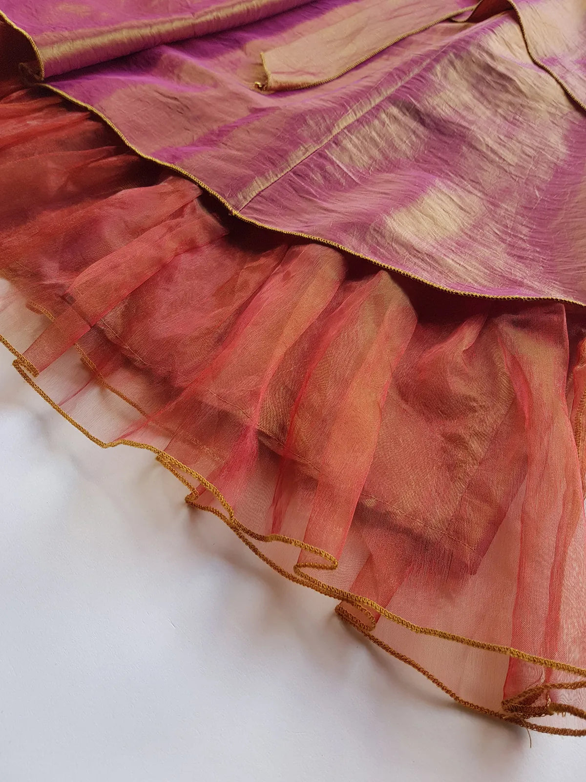 2000s Whimsical Iridescent Fairy Dress in Colour Changing Rose Gold - Hand Beaded - Multi Tier Dress - Applique Lace in Gold - Shirred Detailing
