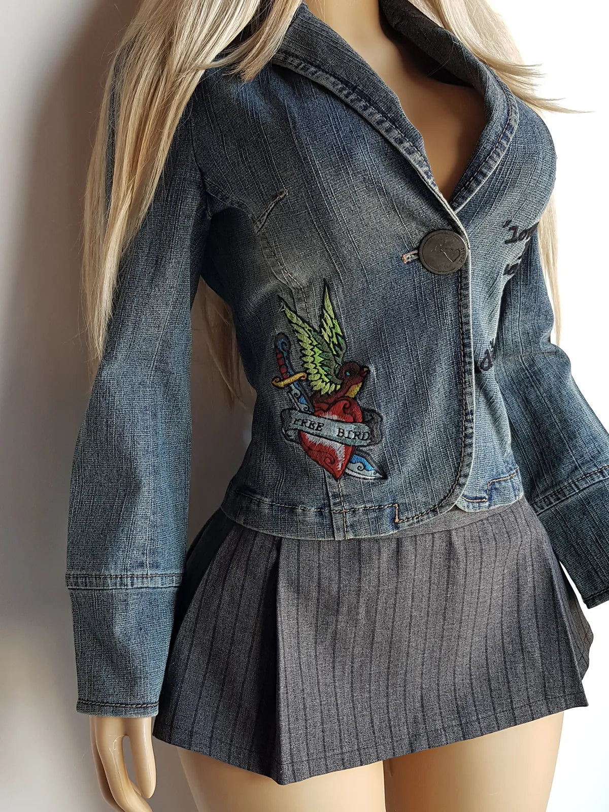 1990s Mudd Designer Deadstock - Insane Denim & Embroidery - Fitted Jacket - Metal Hardware - Original Tags still Attached