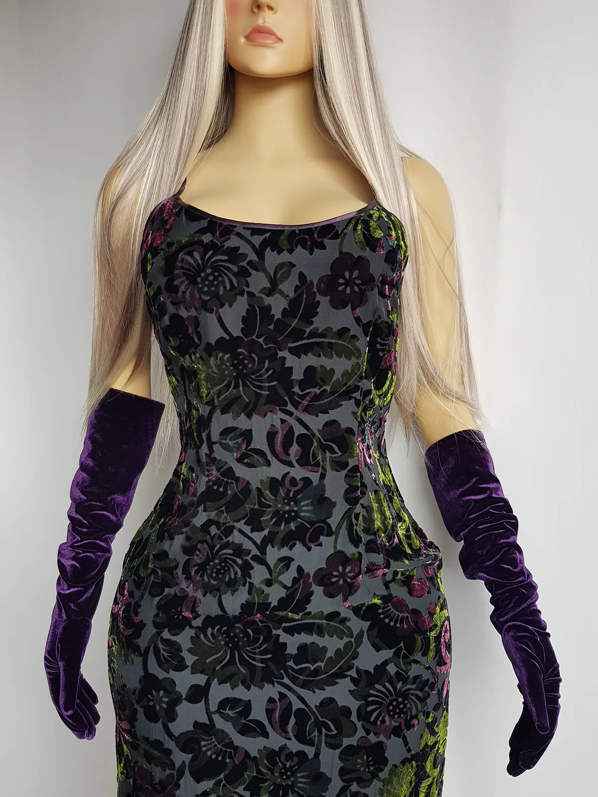 Authentic 1990s Whimsigoth Iridescent Burnout Velvet Floor Length Hourglass Gown- when the sun hits the fabric it glows Purples & Greens