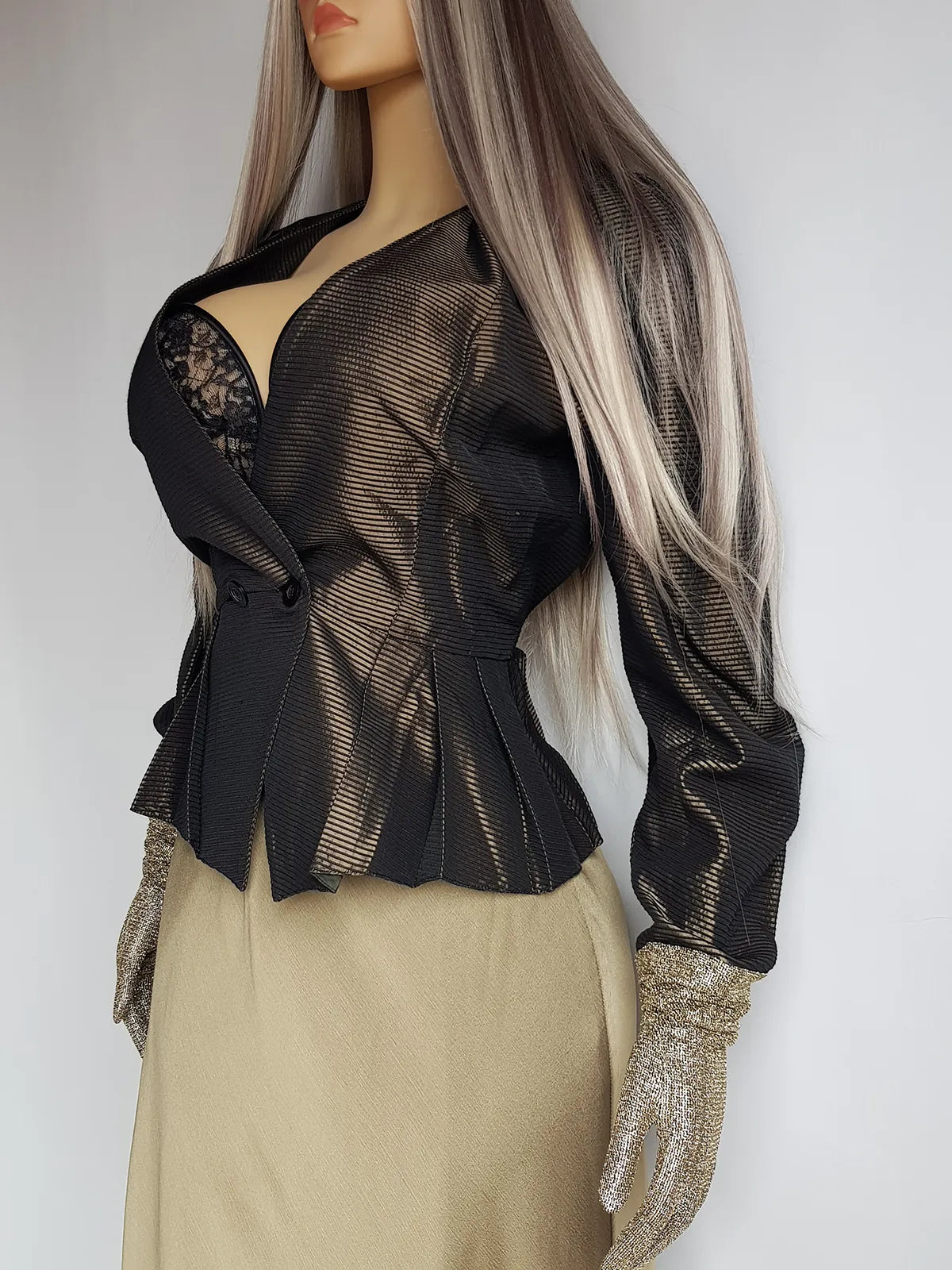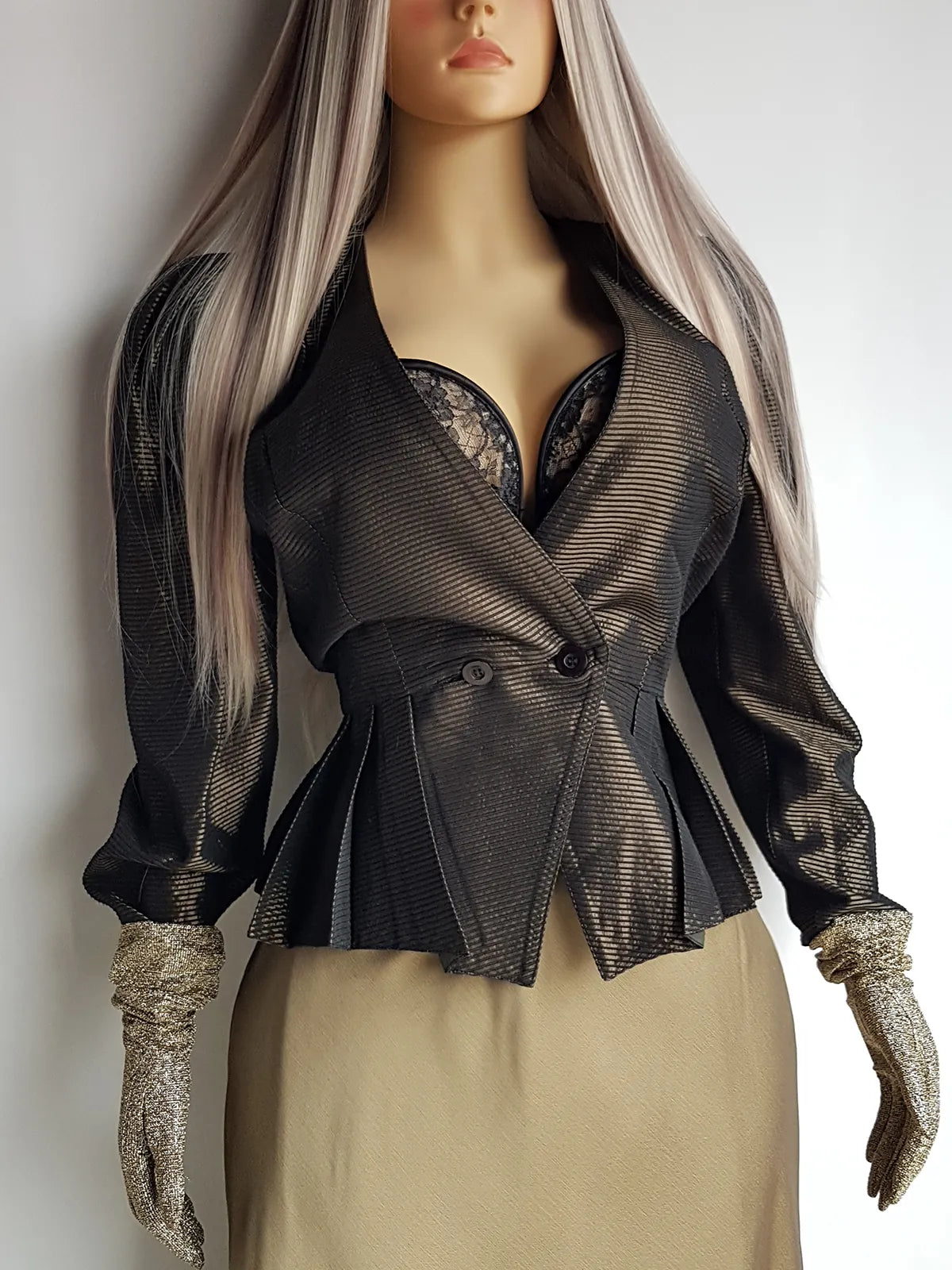 Authentic 90s Designer Sculptural Jacket - Impeccable Tailoring - Nipped Waist - Textured Bronze Fabric - unbelievable hourglass fit - fully lined