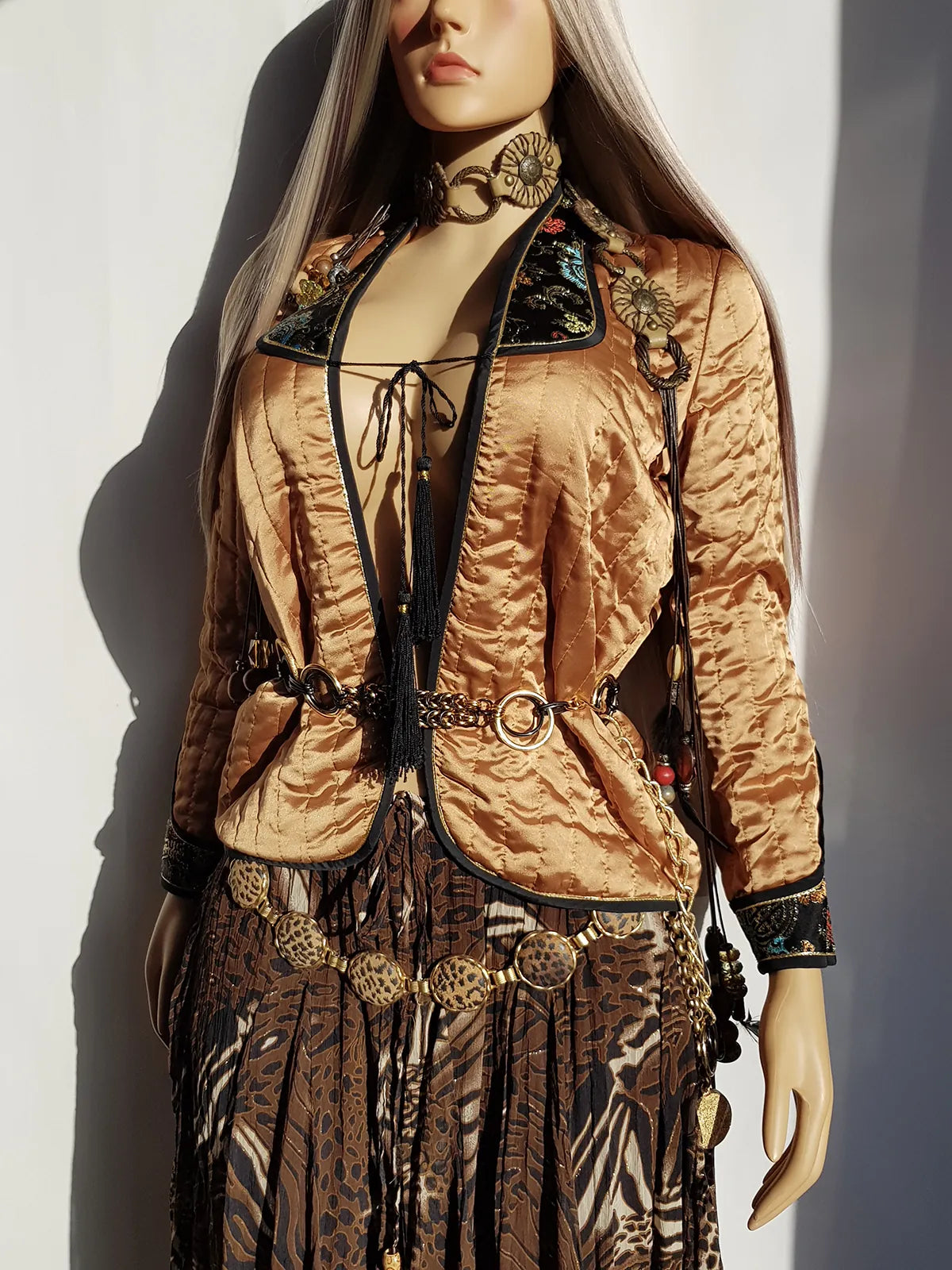 Dreamy Vintage Oriental Quilt Jacket with Ornate Brocade Shoulder Detailing- Tie Front with Tassels - Incredibly Versatile Piece