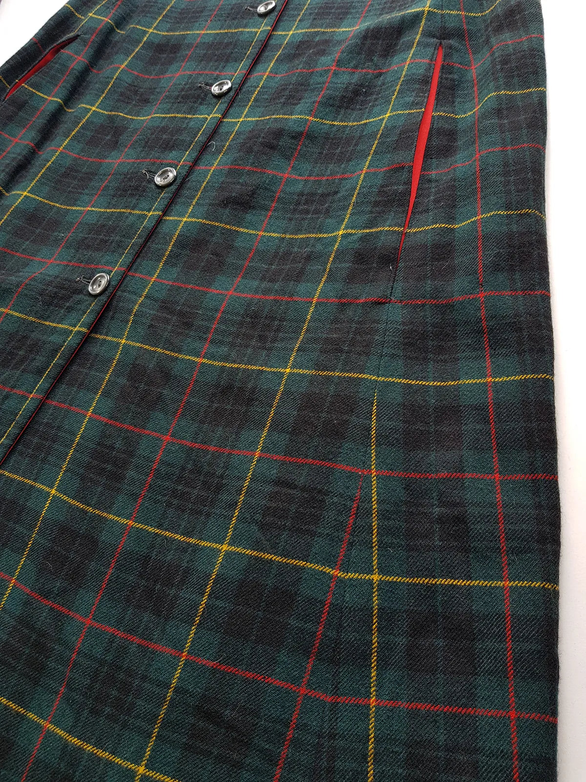 Vintage 1960s Plaid Cape in Hunter Green with Knockout Red Lining - Ralph Lauren Equestrian Style - Button Front Closure