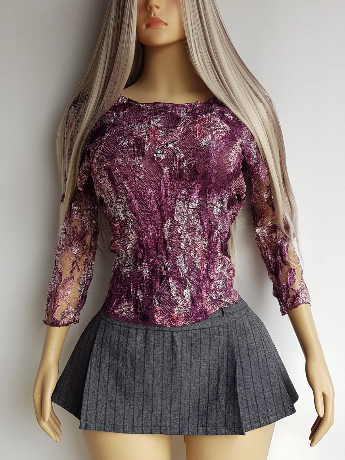 Vintage 1990s Whimsigoth Sheer Knit Top - Vibrant Grape - So Sexy - Curve Hugging Clingy Knit -