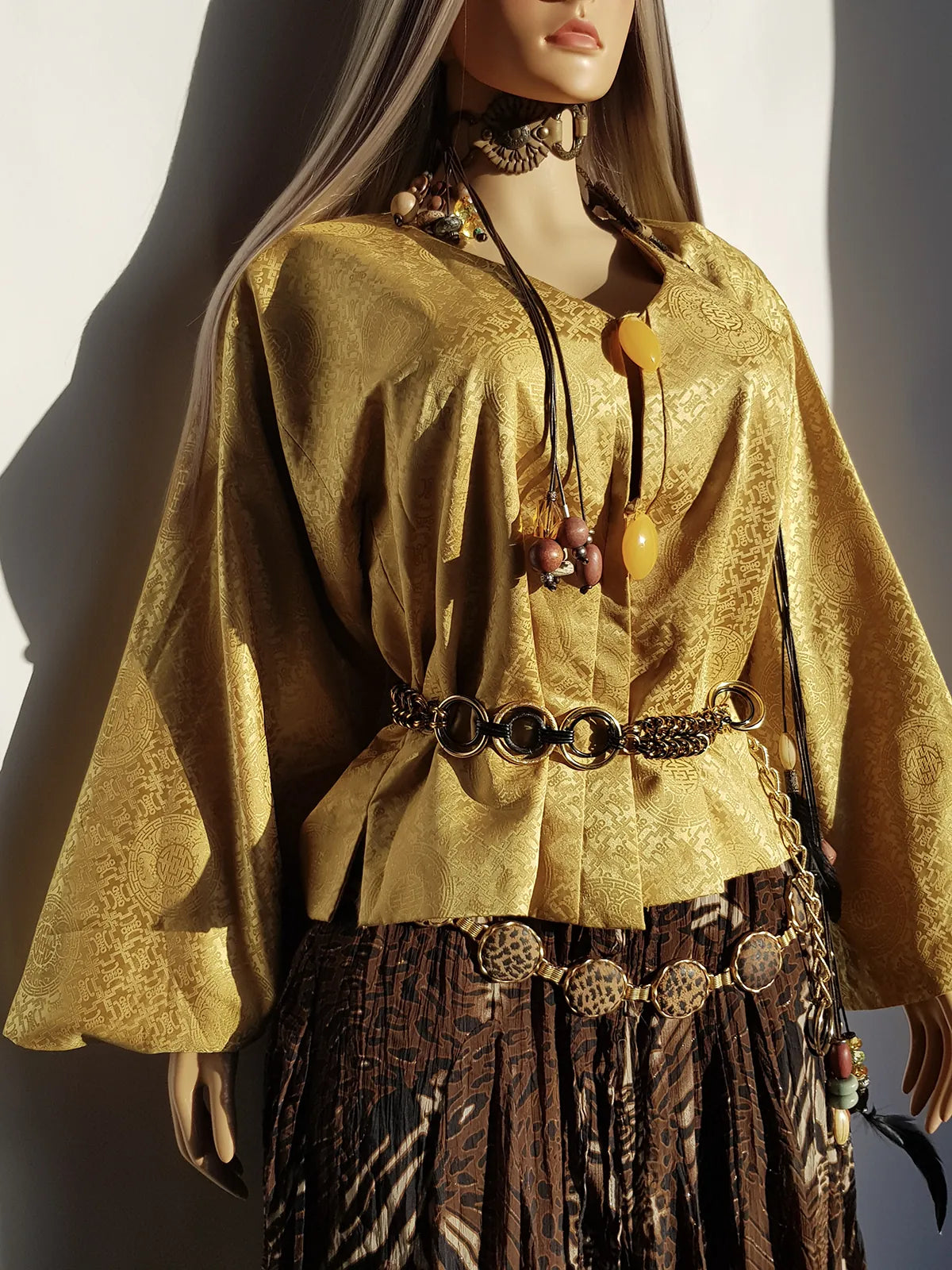 Vintage Golden Oriental Jacket with Large Feature Buttons - Stunning Print - Flared Sleeves