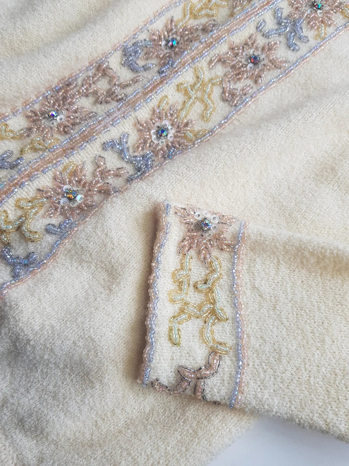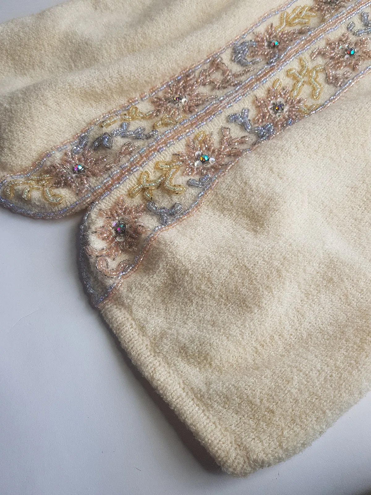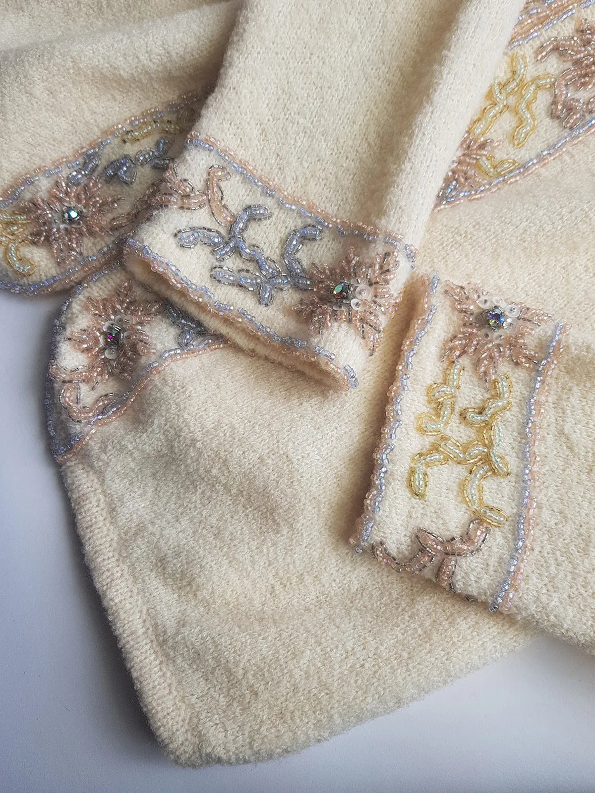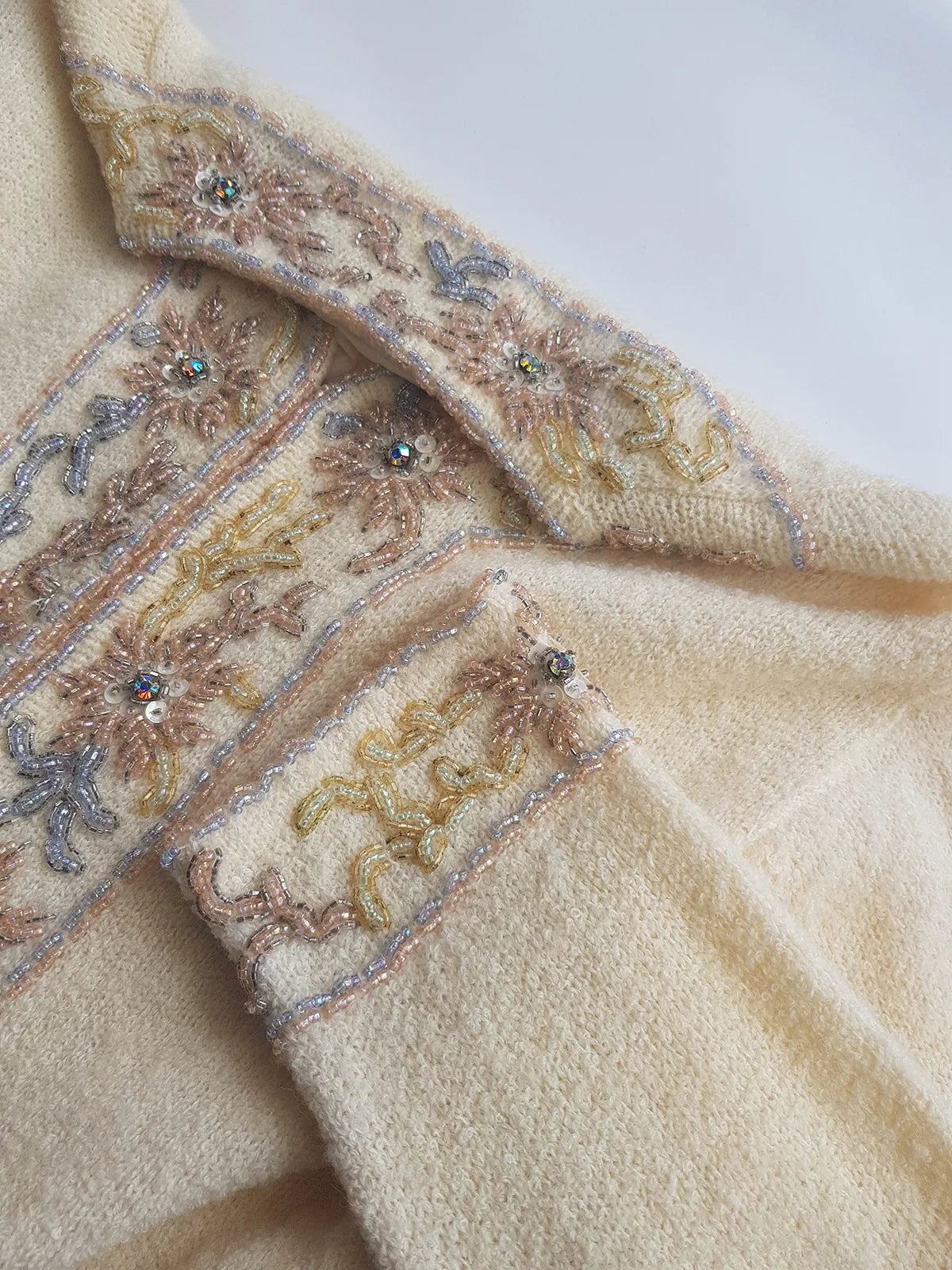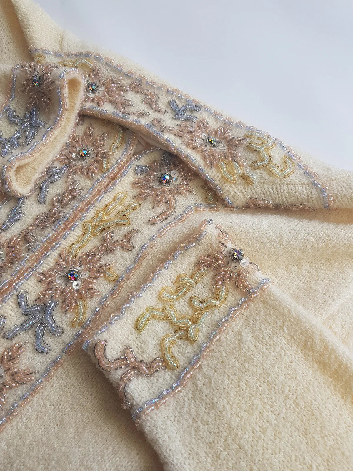 1950s Vintage Heavily Beaded Knit Jacket / Cardigan - Bridal Quality Cream Knit - Handmade Fully Lined Beaded Jacket