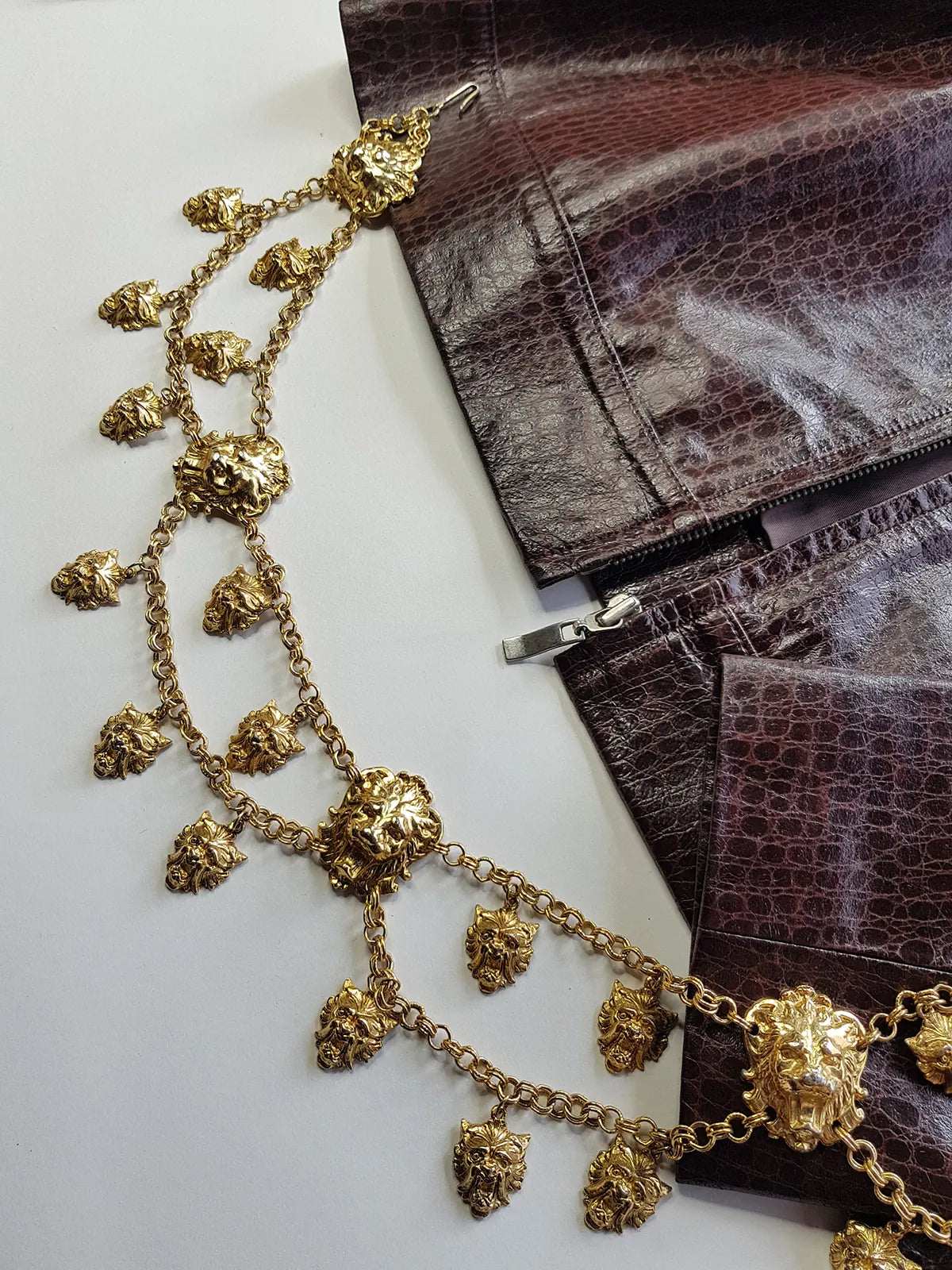 Vintage Italian Lions Head chain belt / knecklace - 1980s super heavy high quality - never worn - absolute knockout accessory - wear multiple ways
