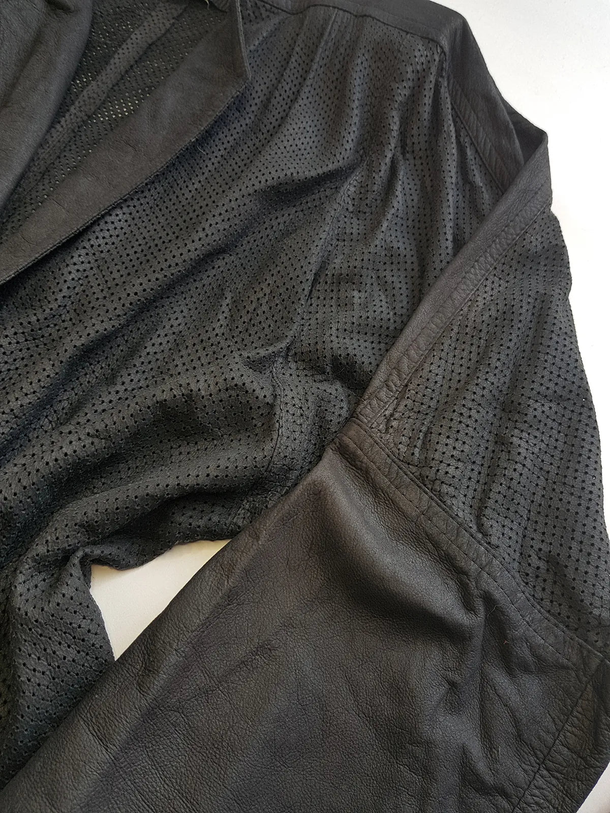 Vintage Italian Rare 100% Genuine Leather Jacket in Black - Buttery Soft & Beautifully Draped Perforated Leather - Motorcycle Vibes but very light to wear