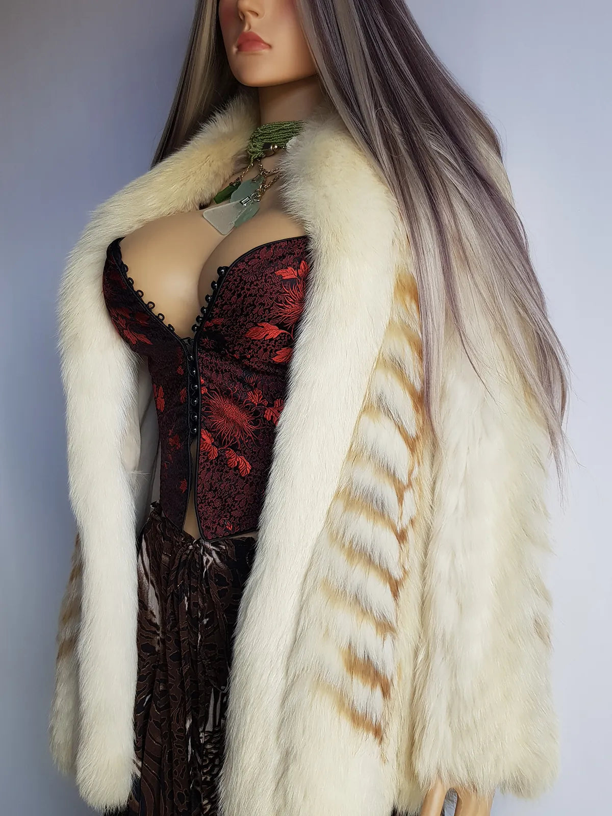 Description - Vintage Saga Creamy White & Gold Fox Fur Coat - Soft & Dreamy - Perfect Length