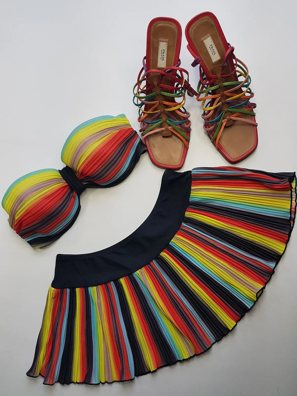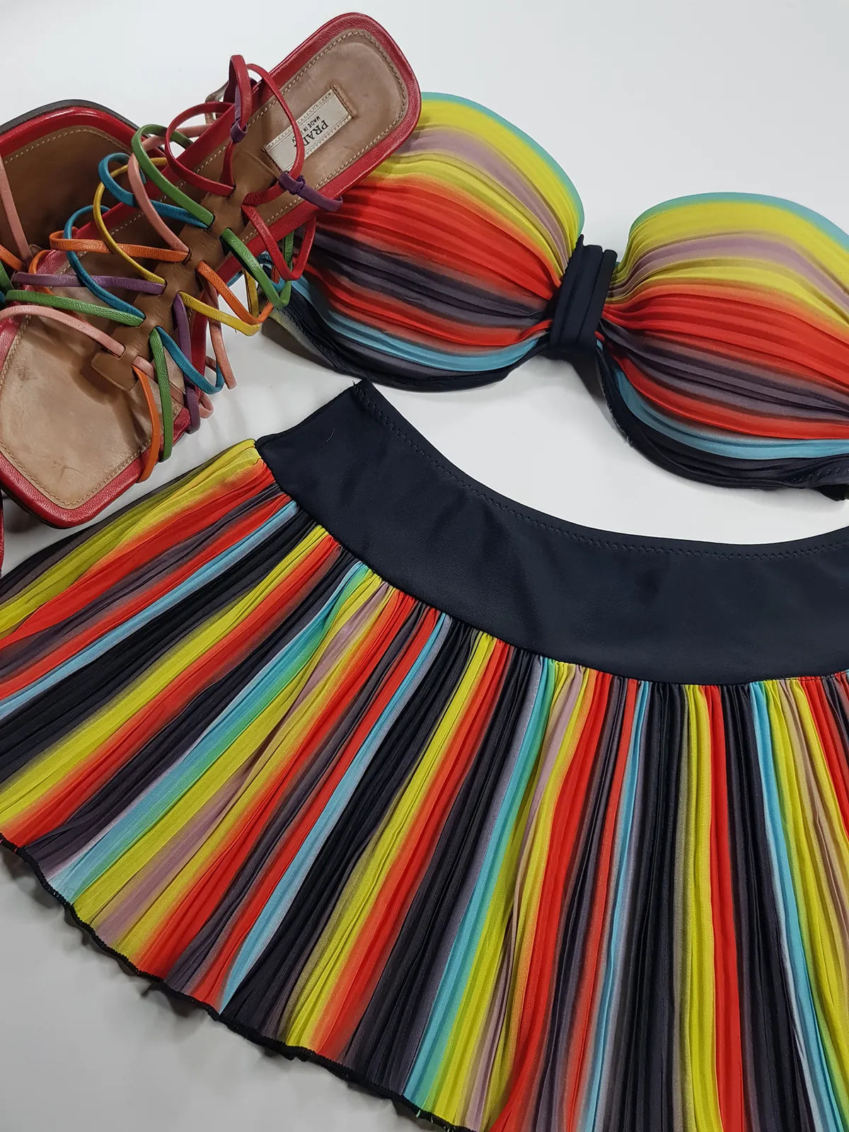 Knockout 1980s Statement Swimwear - Multicolour Vintage - Ultra Feminine - Bikini Top & Skirt - Two Piece Set