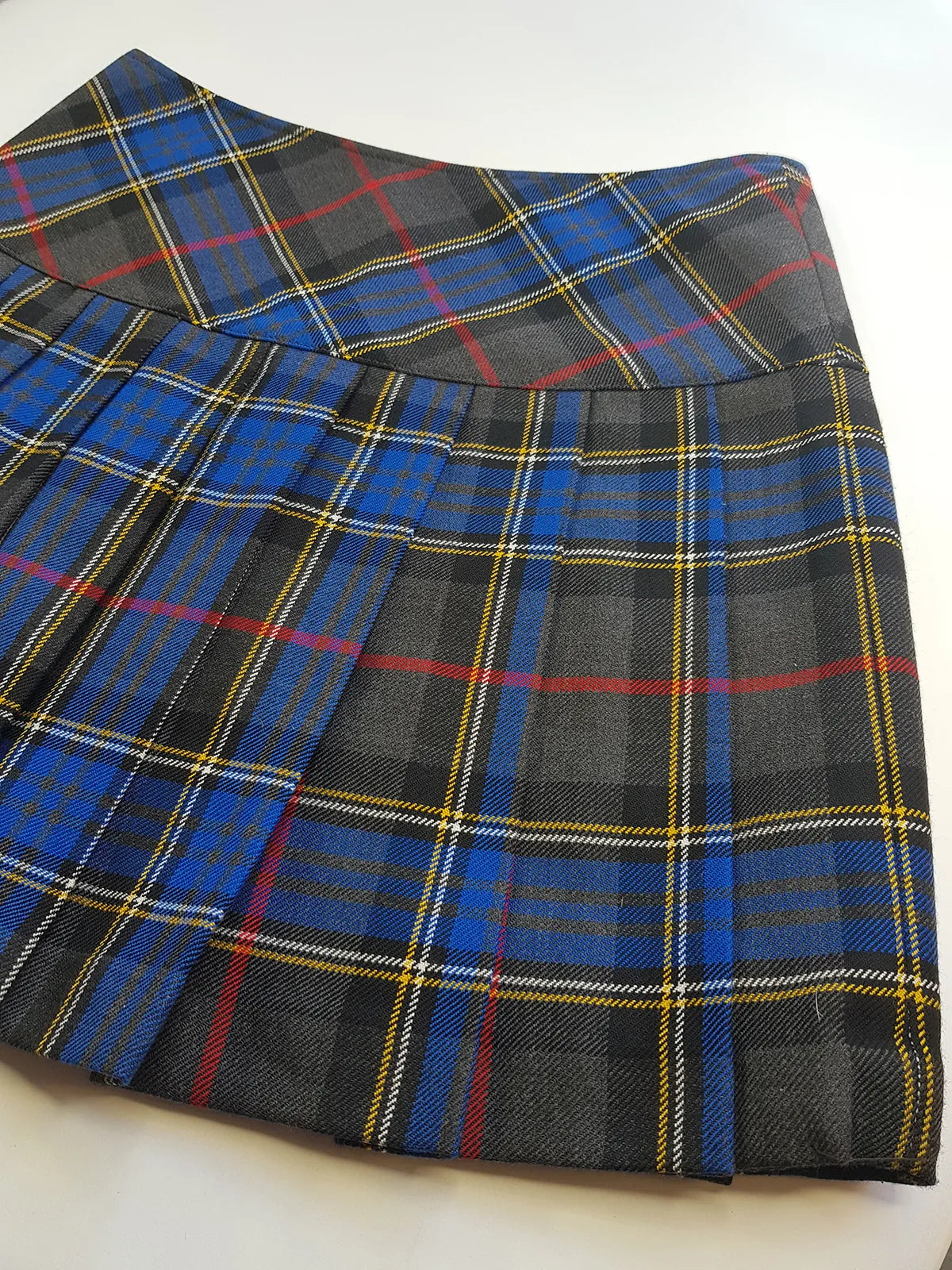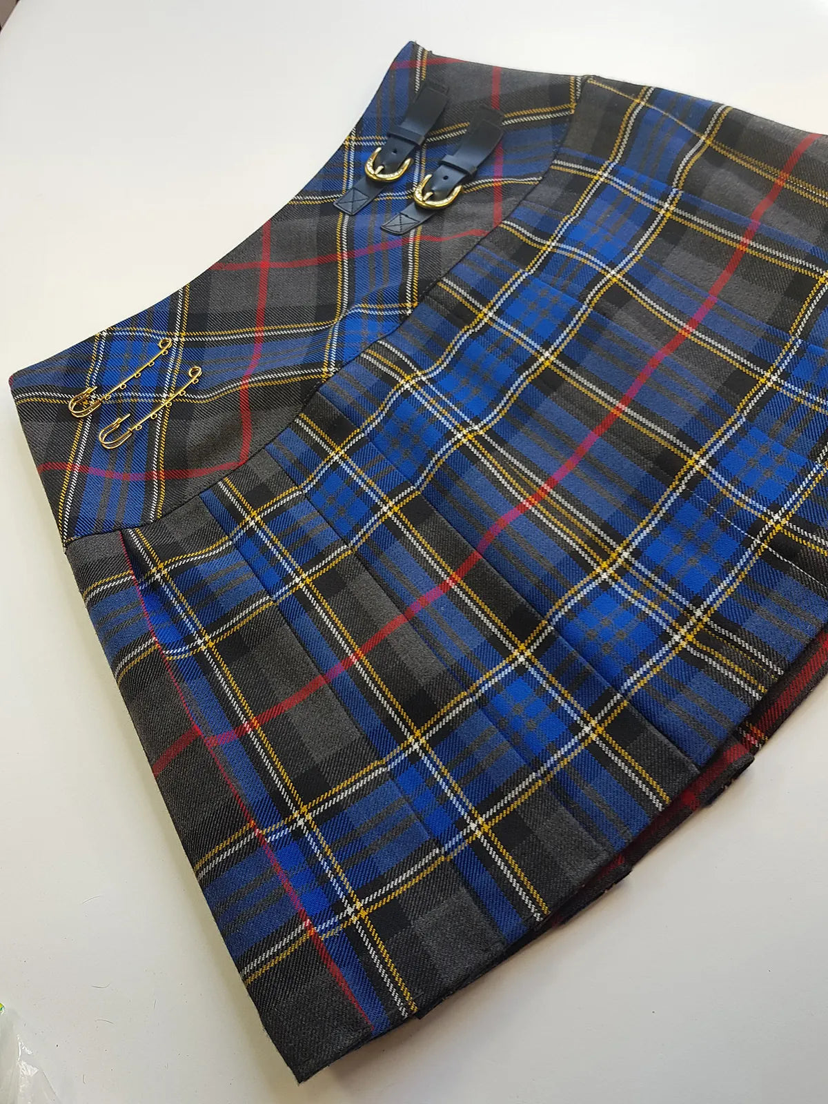 1990s Vintage Wool Plaid Pleated Mini Skirt - Leather Buckles with Gold Hardware - Perfect Tailoring & Length - Pins Included to hang your own charms
