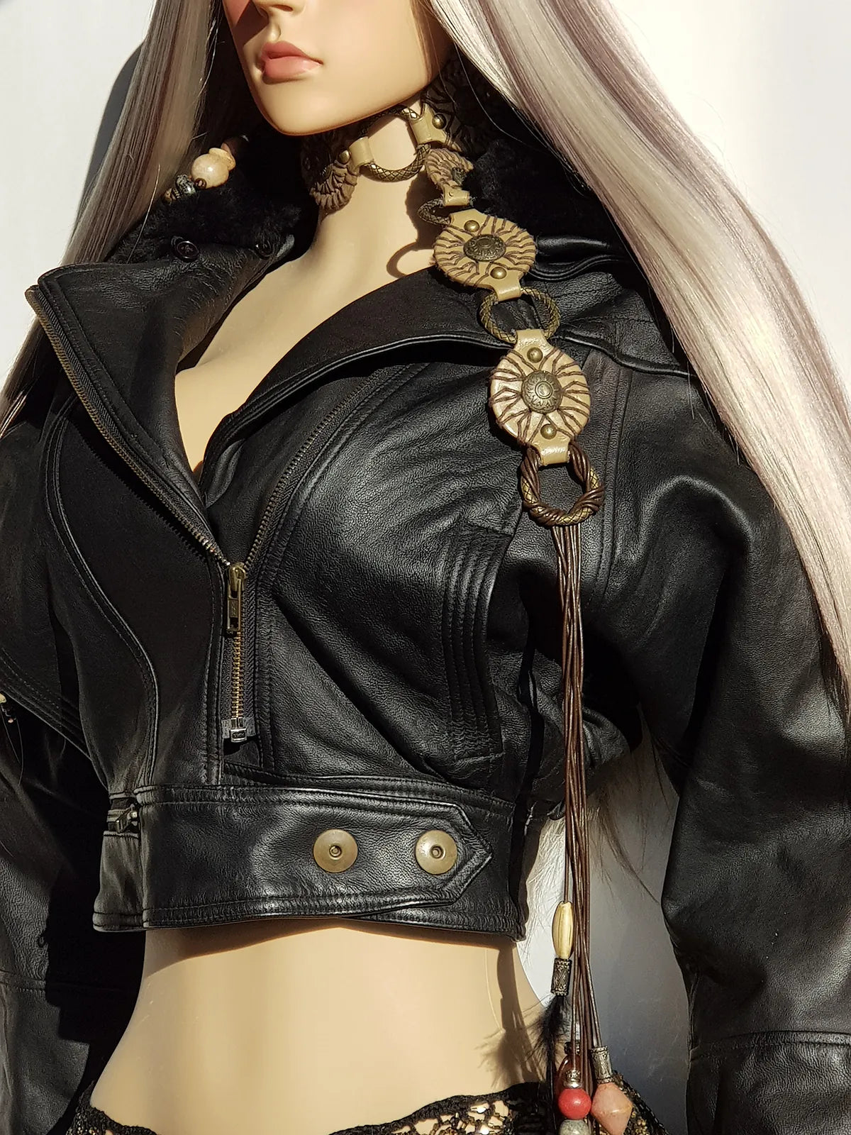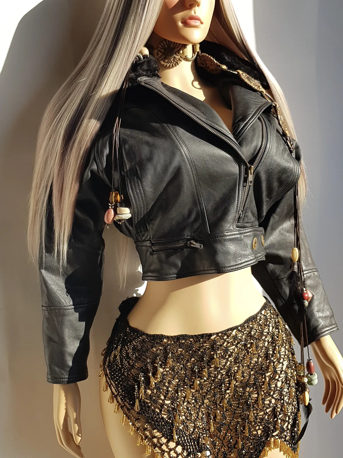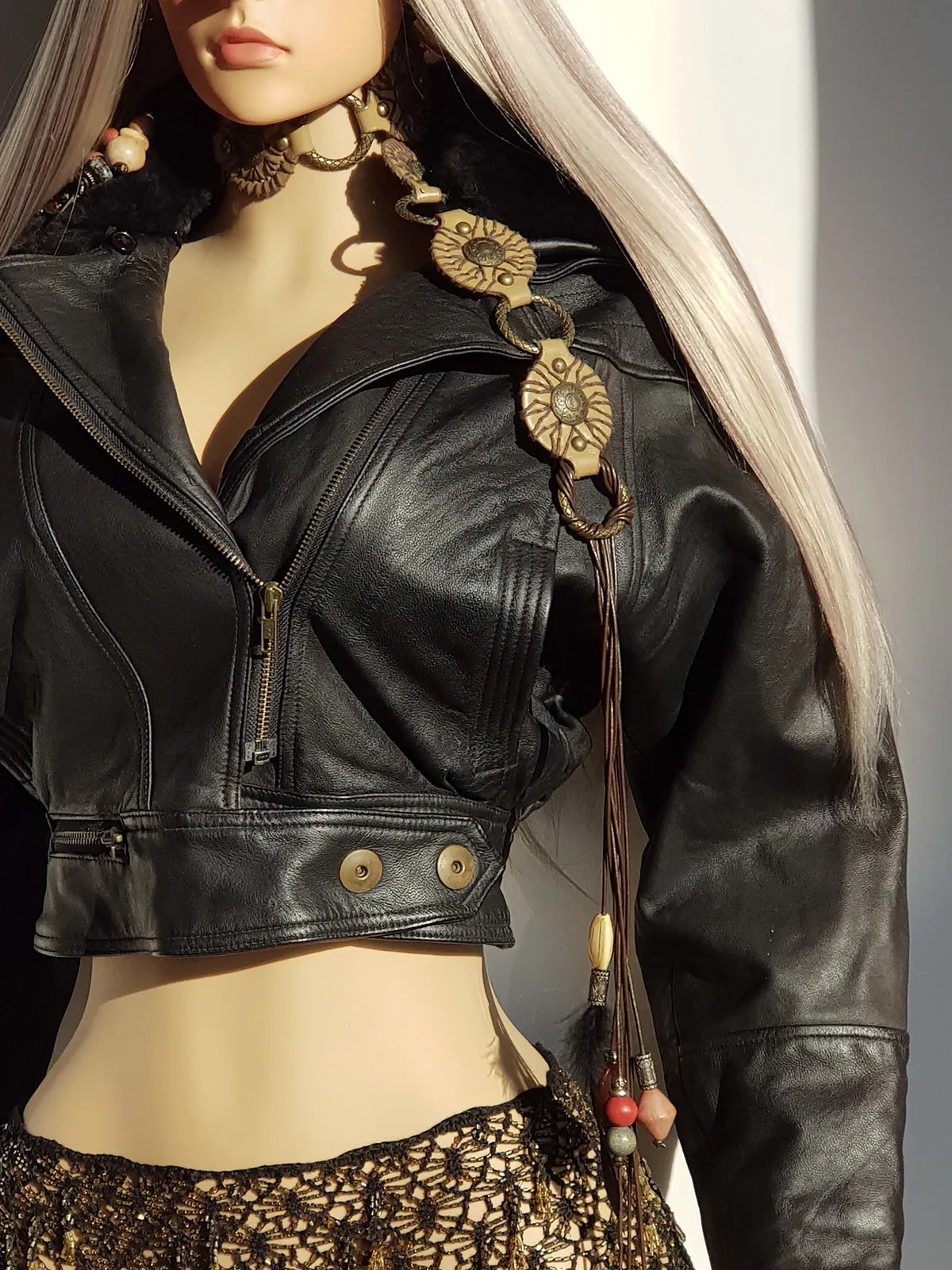 • Fabrics & Materials - 100% Genuine Leather & Vegan Black Fur