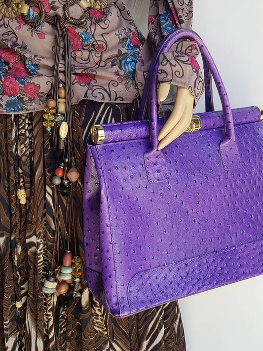 Vintage 70s Rich Glamour Italian Made Designer Borse in Pelle Genuine Ostrich Leather Bag