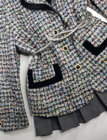 1990s Iconic Clueless Style Plaid Jacket - Tailored Hourglass - Pinks Purples Greens & Blues - Perfect Shape - Fully Lined
