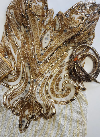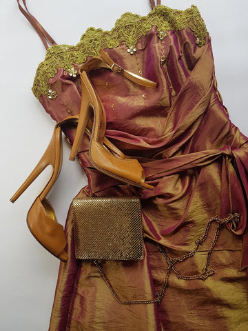 2000s Whimsical Iridescent Fairy Dress in Colour Changing Rose Gold - Hand Beaded - Multi Tier Dress - Applique Lace in Gold - Shirred Detailing
