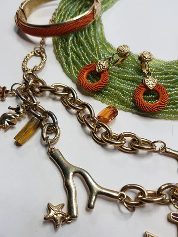 Antique Italian Green Ocean Glass Charm Necklace Stack - only 1 ever made - custom made from components over 100 years old - multi layered