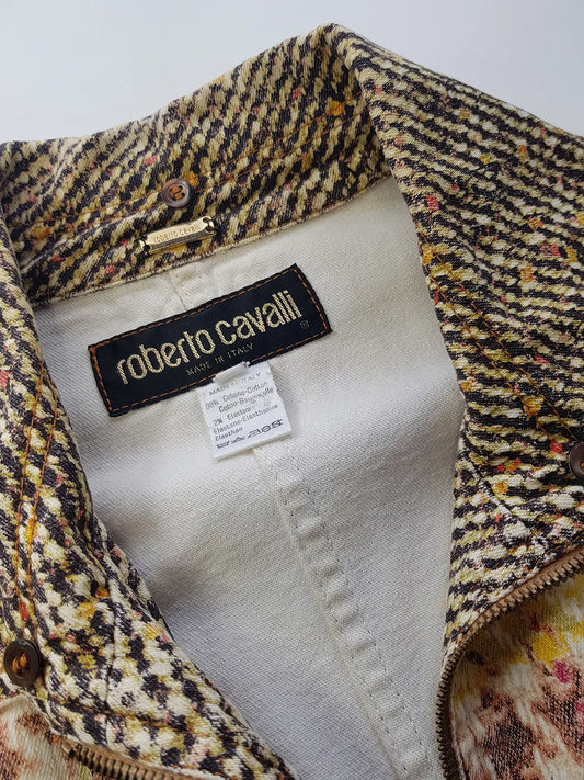 Roberto Cavalli Vintage Denim Snake Print Jacket 100% Cotton - White Denim - Gold Hardware - Made in Italy - Rare midi/larger size - Perfect for busty girls